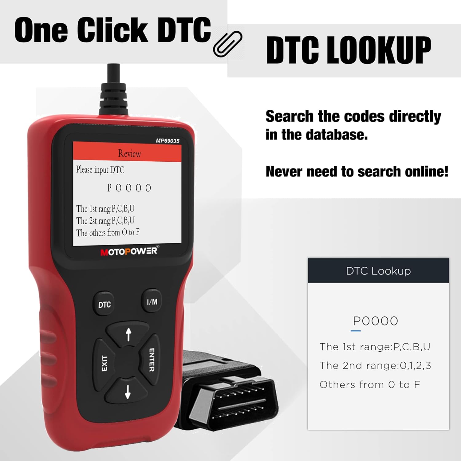 MOTOPOWER MP69035 OBD2 escáner universal para motor de coche, lector de código de falla de motor, herramienta de escaneo de diagnóstico CAN para todos los coches de protocolo OBD II