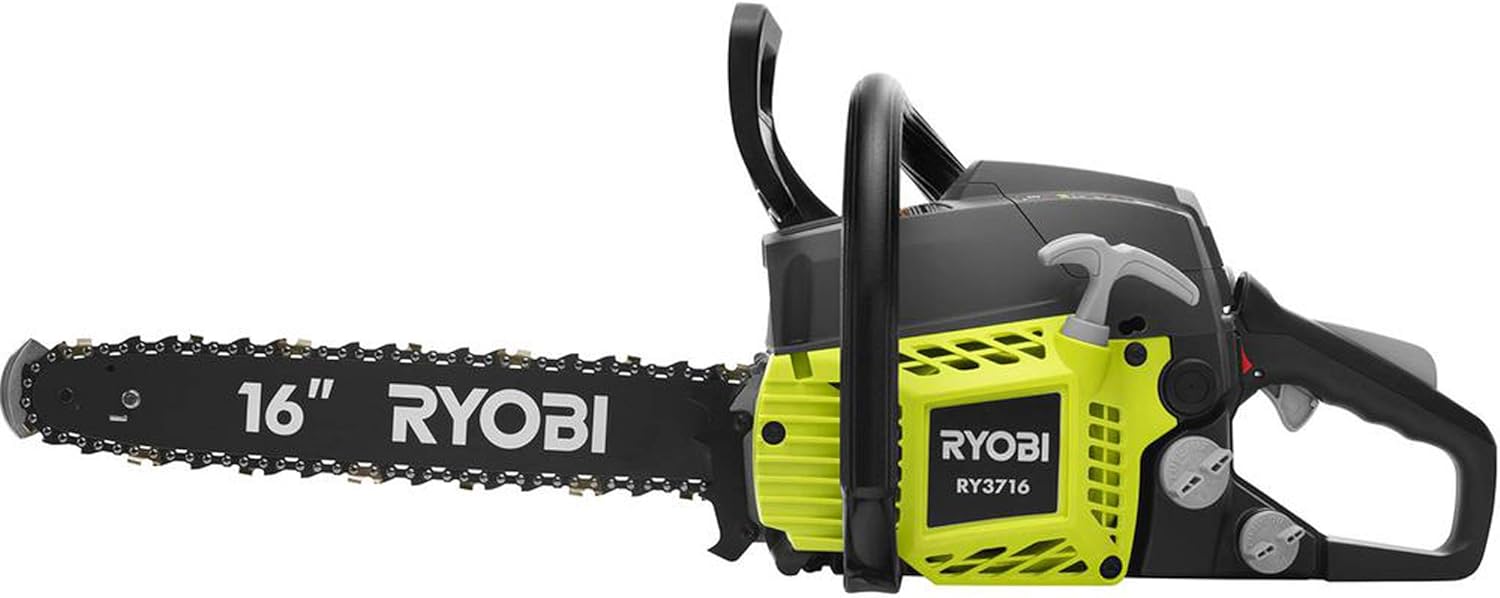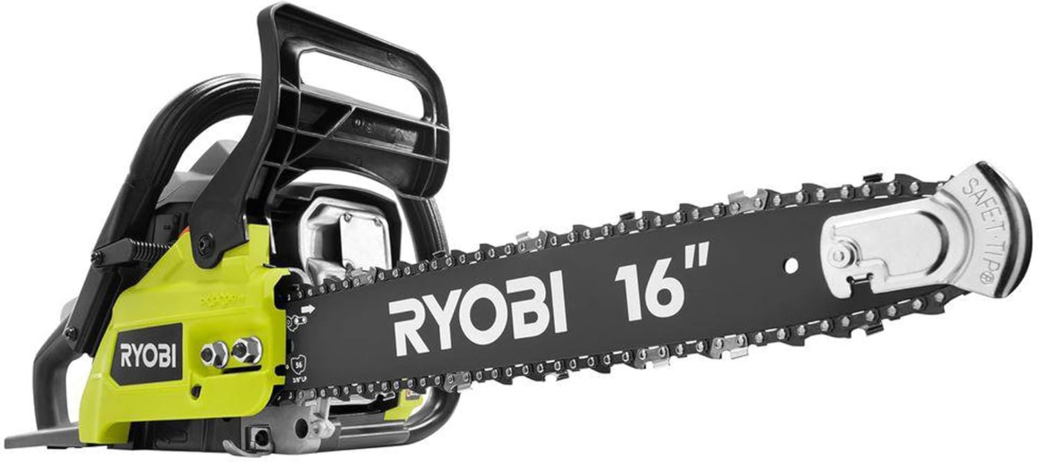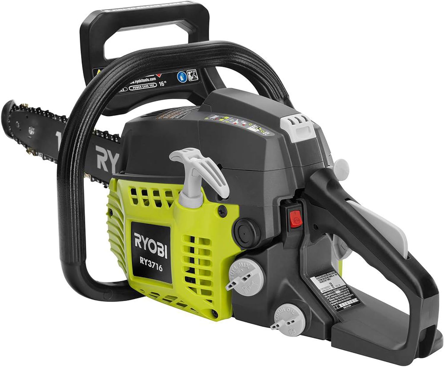 Motosierra de gas de 2 ciclos de 16", mango antivibración y estuche.