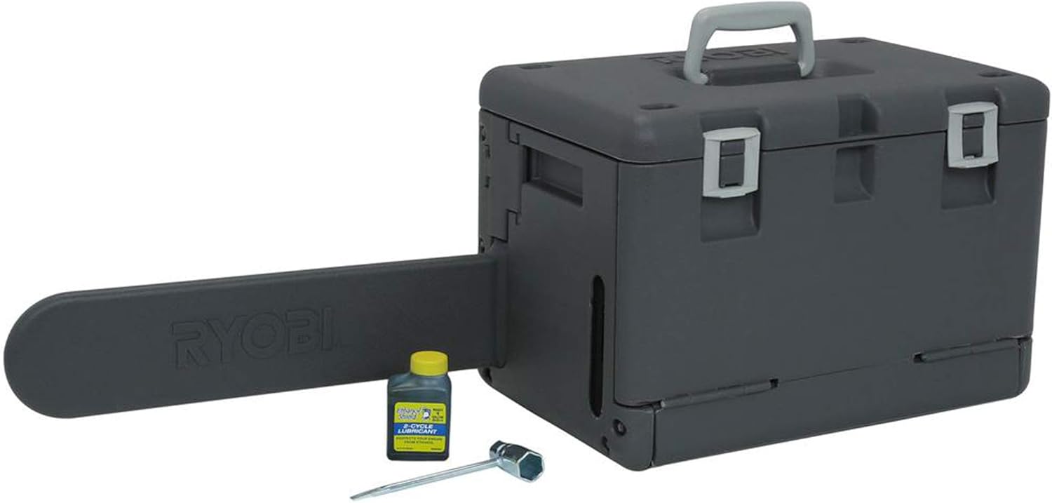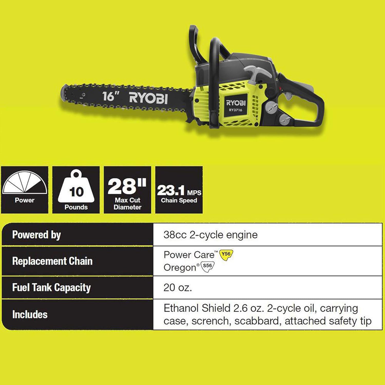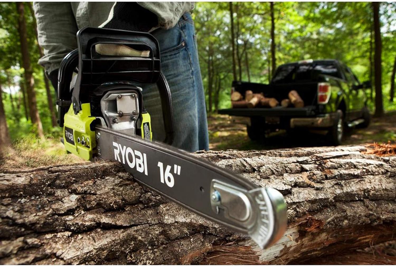 Motosierra de gas de 2 ciclos de 16", mango antivibración y estuche.