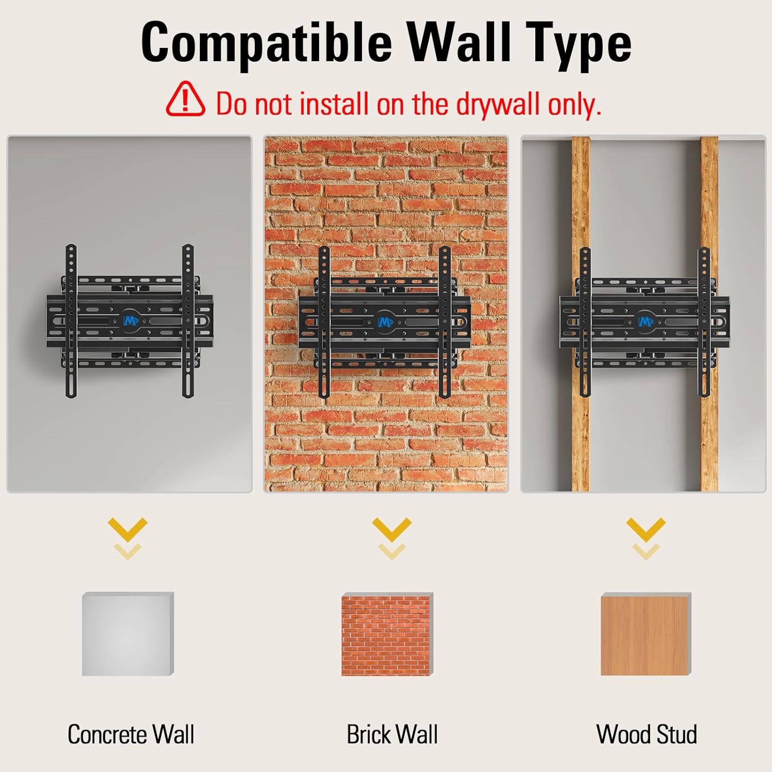 - Soporte de pared para televisor compatible con la mayoría de televisores de 32 a 55 pulgadas de hasta 44.90 kg, con VESA máximo de 400 mm x 400 mm de espacio entre agujeros de montaje.