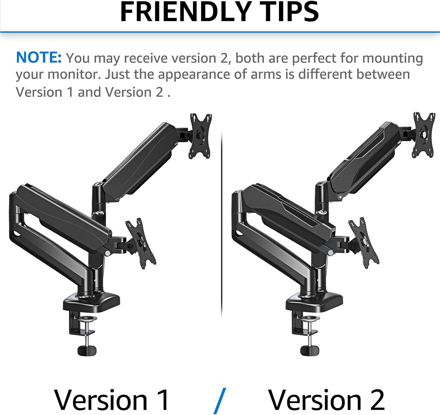 Mountup - Soporte de monitor dual totalmente ajustable con resorte de gas, soporte de escritorio para monitor con abrazadera en C, base de montaje con ojales, brazo de monitor doble para 2 pantallas de computadora de hasta 32 pulgadas, MU0005.