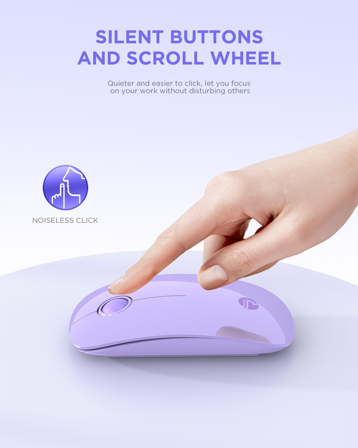 - Diseño elegante y cómodo: nuestro delgado mouse inalámbrico cuenta con una simplicidad destacada con una hermosa forma cómoda de sostener y fácil de llevar. El diseño único de rueda circular y la mayor zona de contacto proporcionan mayor comodidad durante el uso. (Ten en cuenta que la rueda del mouse solo puede desplazarse hacia arriba y hacia abajo, no hacia la izquierda o hacia la derecha)
