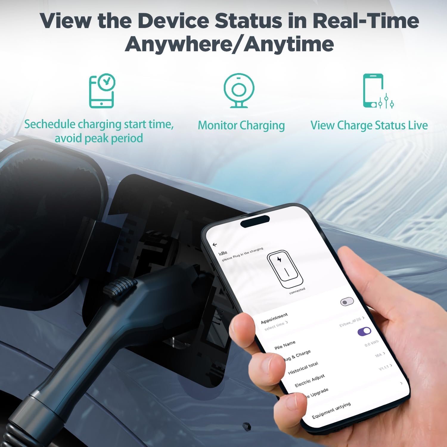 Carga de retardo (1-12 horas) y ajustable de 10-32 amperios: el cargador MUETUX EV se puede retrasar (1-12 horas), el tiempo de carga se puede ajustar de 1 a 12 horas de antelación, programa tu sesión de carga con el temporizador de arranque retardado, ahorrando costos de electricidad y mitigando las cargas máximas. Cargador eléctrico de coche amperaje ajustable: 32A/24A/20A/16A/10Amp.