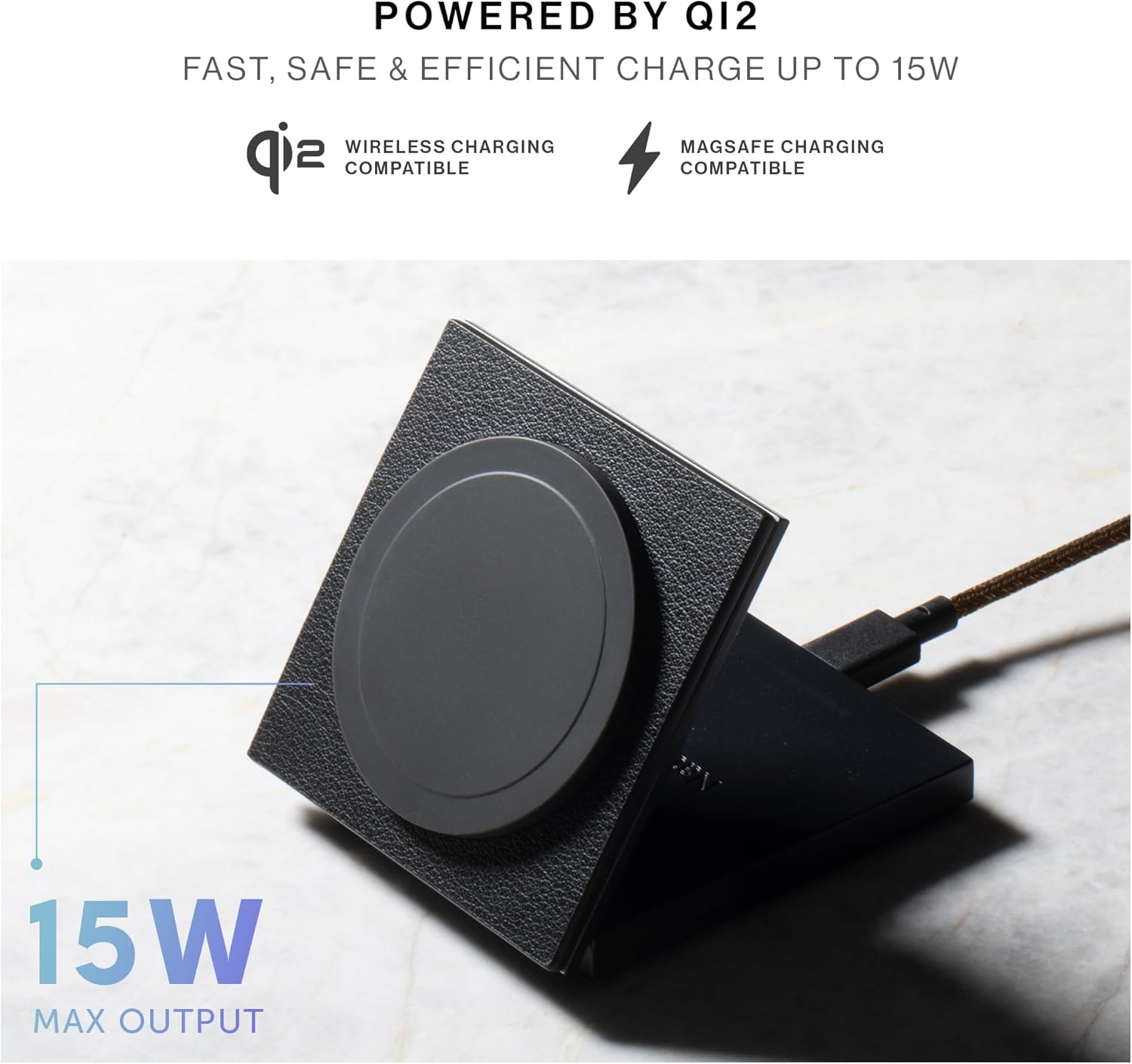 CARGA DE ALTA VELOCIDAD: Equipado con Qi2, lo último en carga inalámbrica, para una carga más rápida, segura y eficiente de hasta 15W. Alta velocidad y compatible con MagSafe para una carga súper perfecta. El indicador LED te permite saber cuándo se están cargando tus dispositivos.