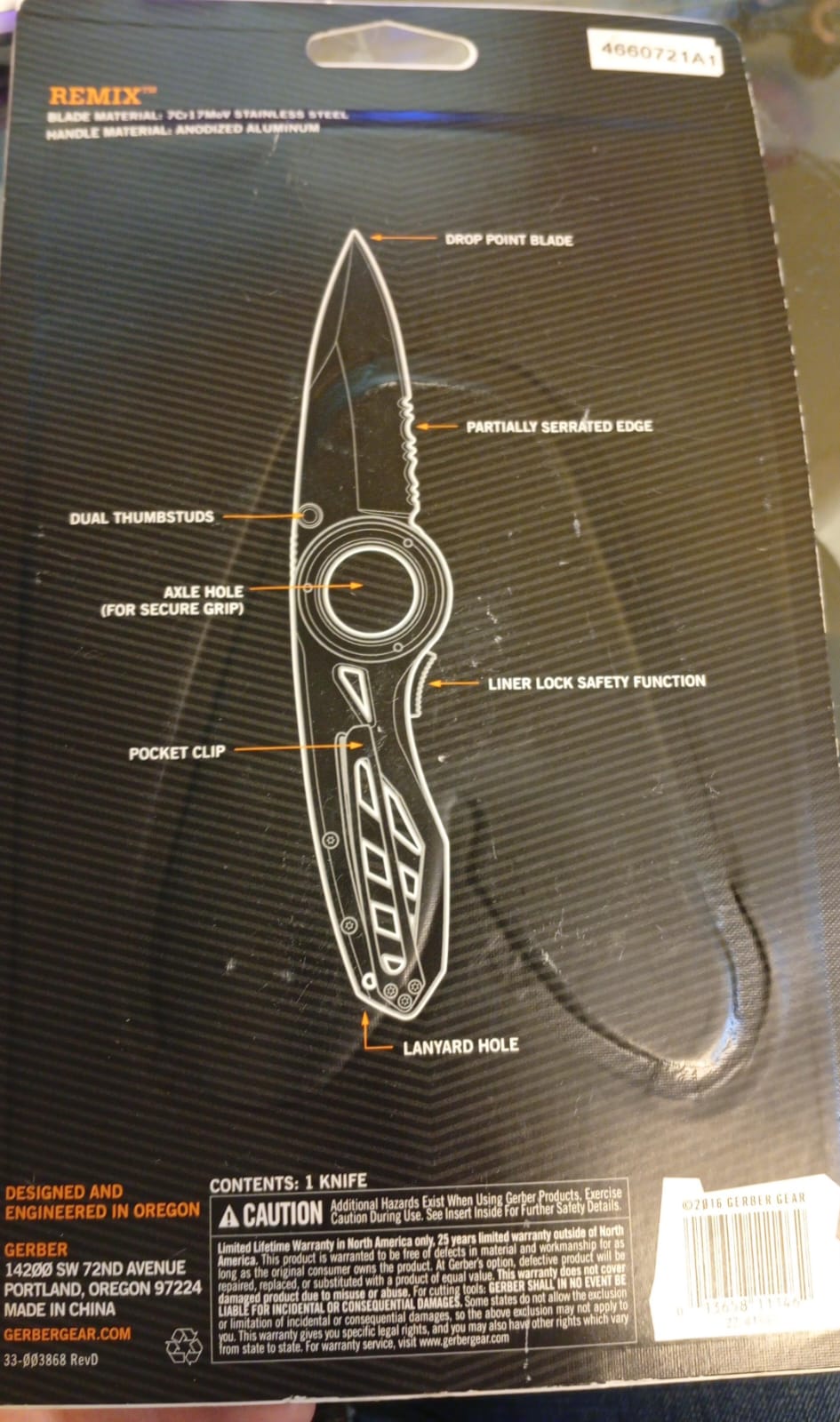 Navaja, Cuchillo Gerber Remix dentado, Acero Inoxidable.