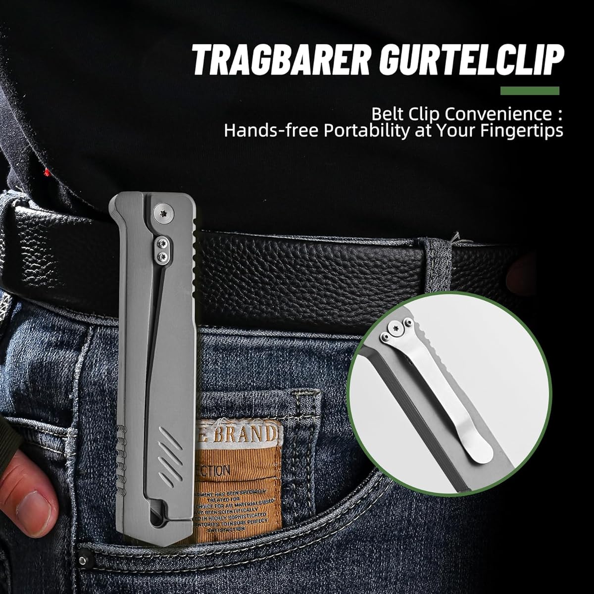 - Una navaja de bolsillo fácil de llevar con un clip de bolsillo extraíble de posición fija para usarla como navaja de camping para todo tipo de climas, navaja de cinturón y navaja de campo ligera.