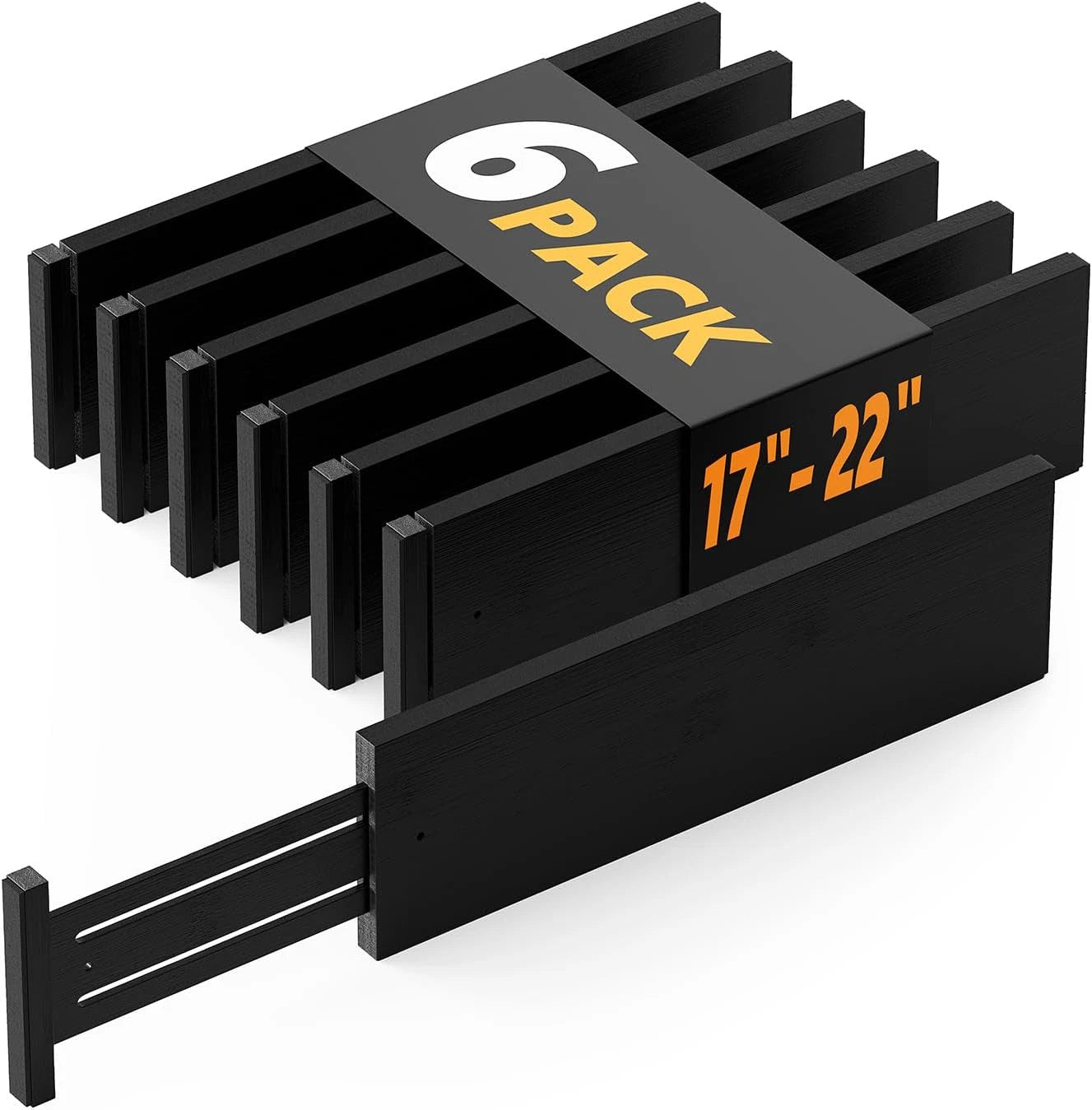 Organizador grande para cajones de cocina, divisores de cajones de bambú expandibles (17 a 21.5 pulgadas), separadores ajustables para cocina, ropa, cambiador, recámara, baño y cajones de computadora, paquete de 6.