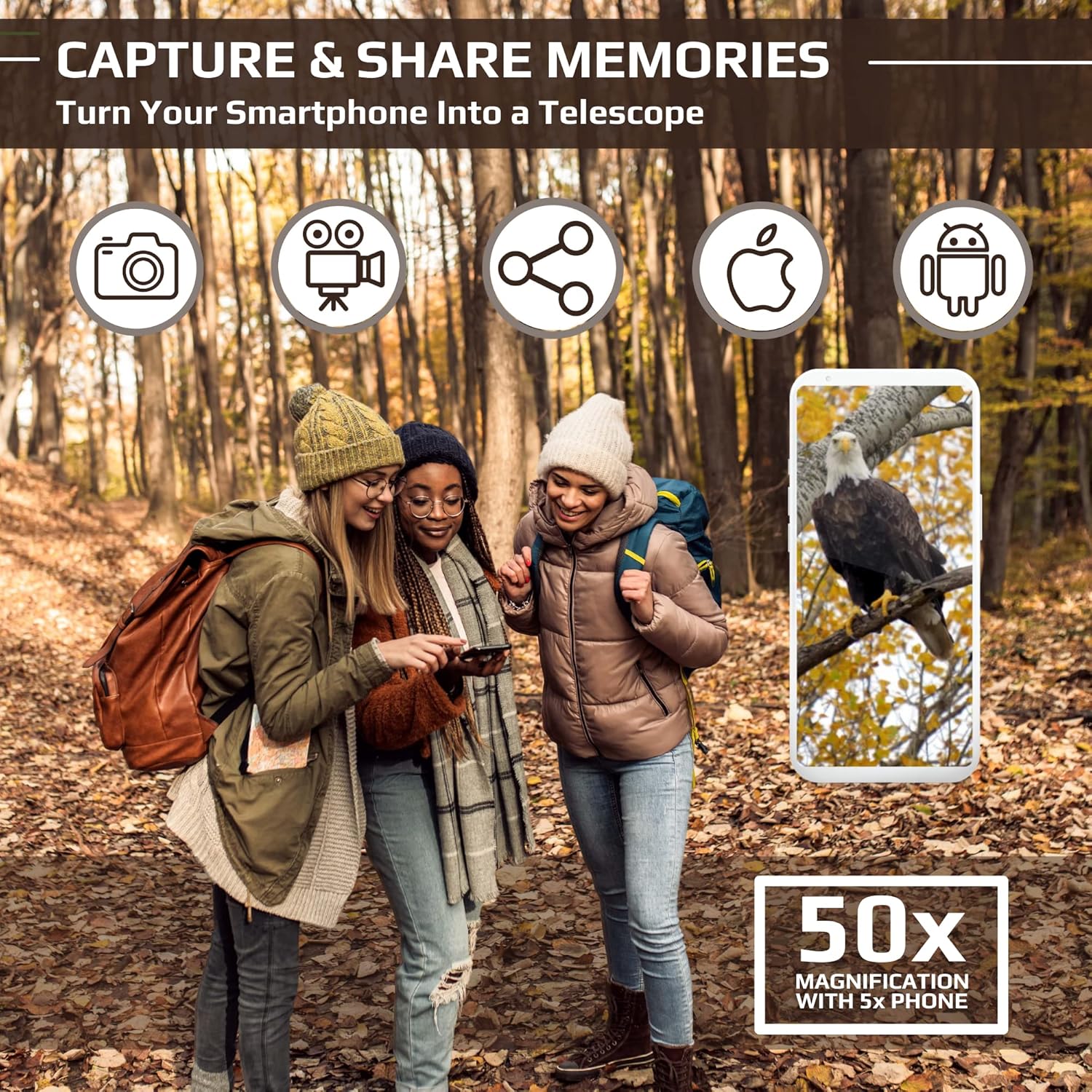 - Soporte monocular resistente para smartphone y trípode: soporte para monocular "Talon" para Android o iPhone con un agarre inigualable para los competidores, mantiene tu valioso teléfono seguro a los monoculares, además de un mini trípode portátil de extensión (extensible a 3 alturas) que asegura una base estable sin sacudidas para fotografía ultratransparente. Instrucciones incluidas para un uso fácil