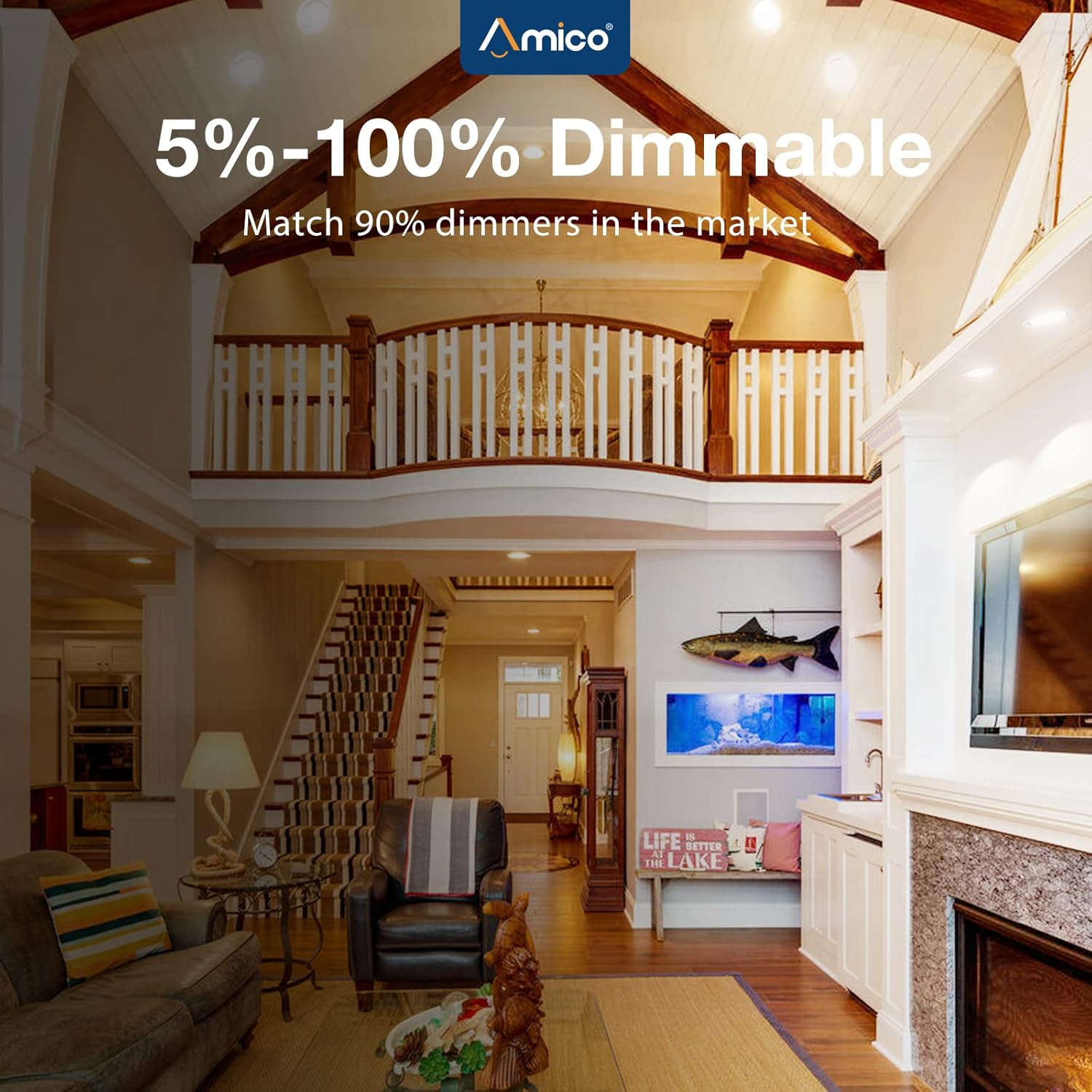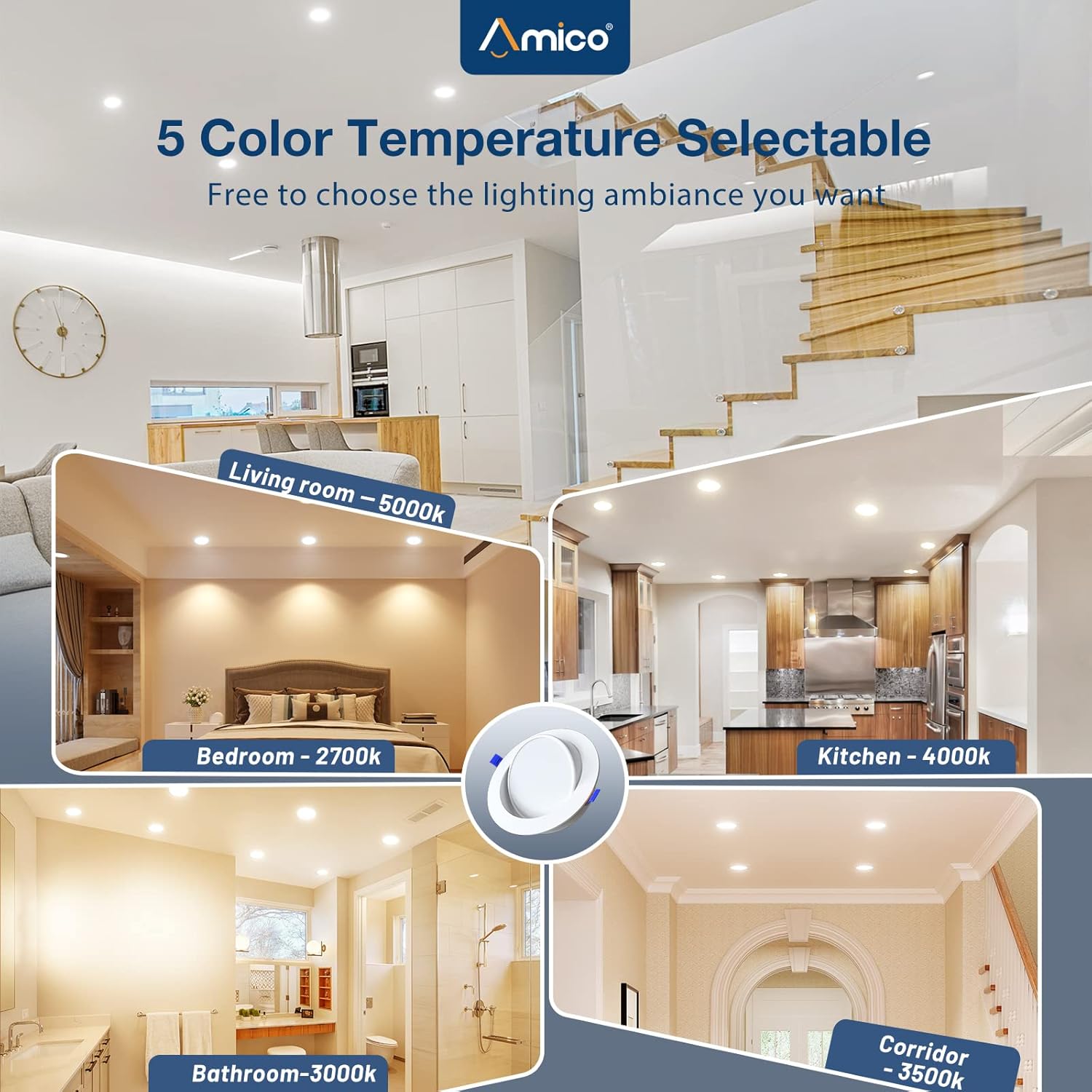 - Amico Beneficios: Su larga vida útil también reduce los costos de mantenimiento. Todas las luces empotradas de Amico están certificadas por ETL de alto nivel.
