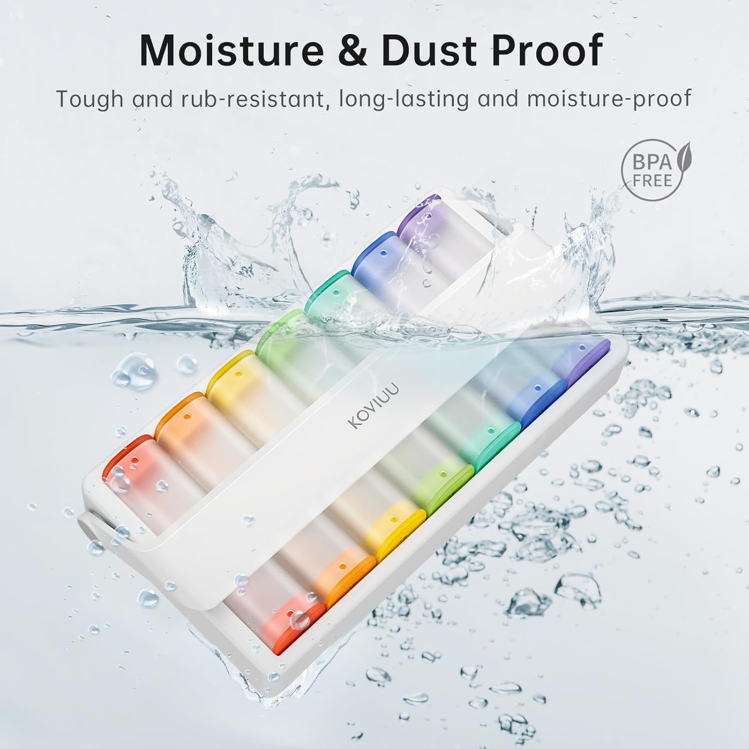 - Materiales seguros: los organizadores de píldoras KOVIUU están hechos de ABS de grado alimenticio y silicona de alta calidad, no contienen BPA, no son tóxicos e inodoros, herméticos y a prueba de humedad, mantienen las pastillas frescas y seguras.