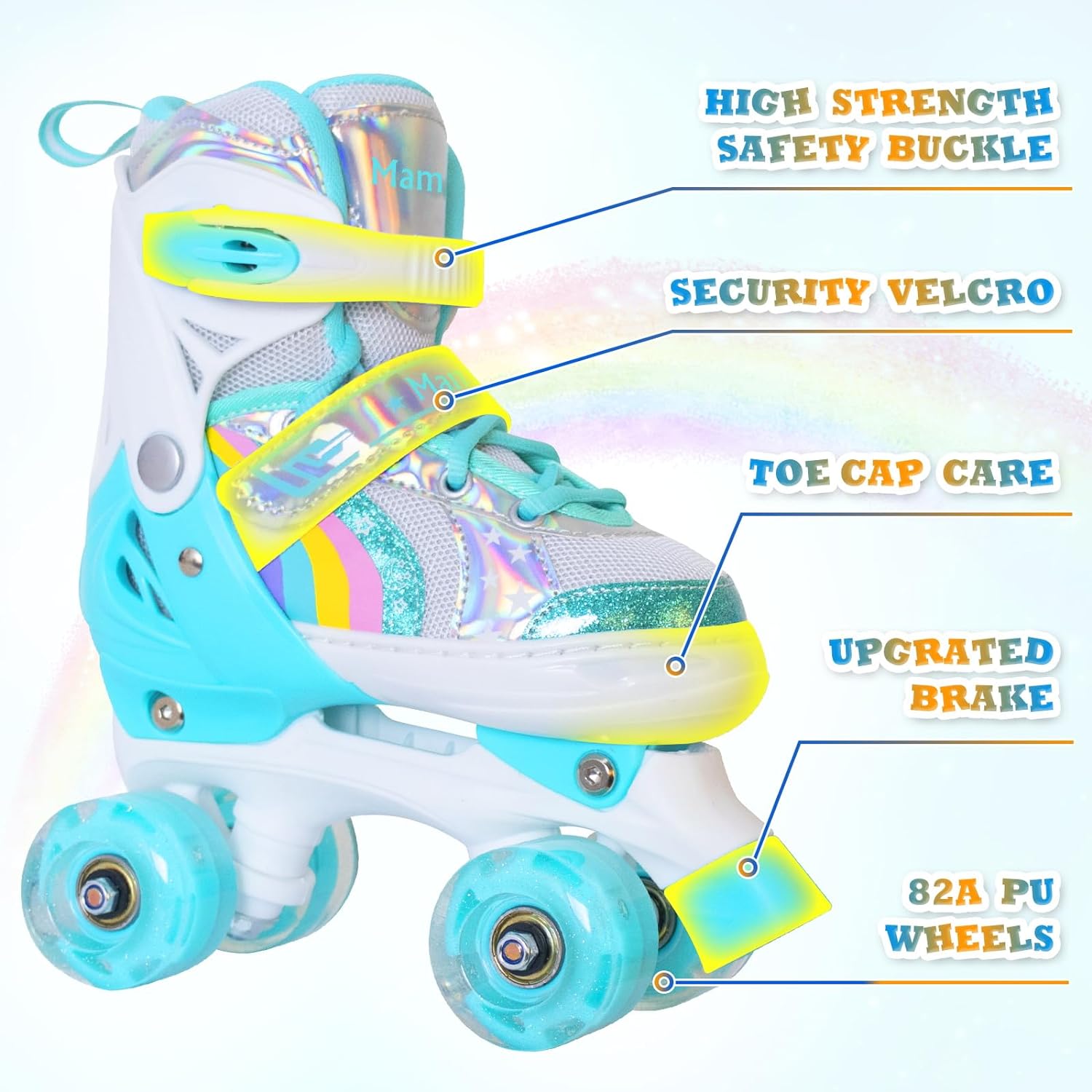 Nattork - Patines de ruedas para niñas pequeñas, 4 tamaños ajustables de arco iris con ruedas iluminadas, el mejor regalo para niños principiantes.