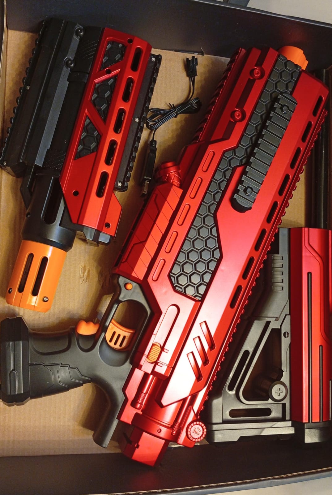 Su tamaño y peso robustos contribuyen a su cómoda ergonomía. Uno de los blásters más geniales que hay.