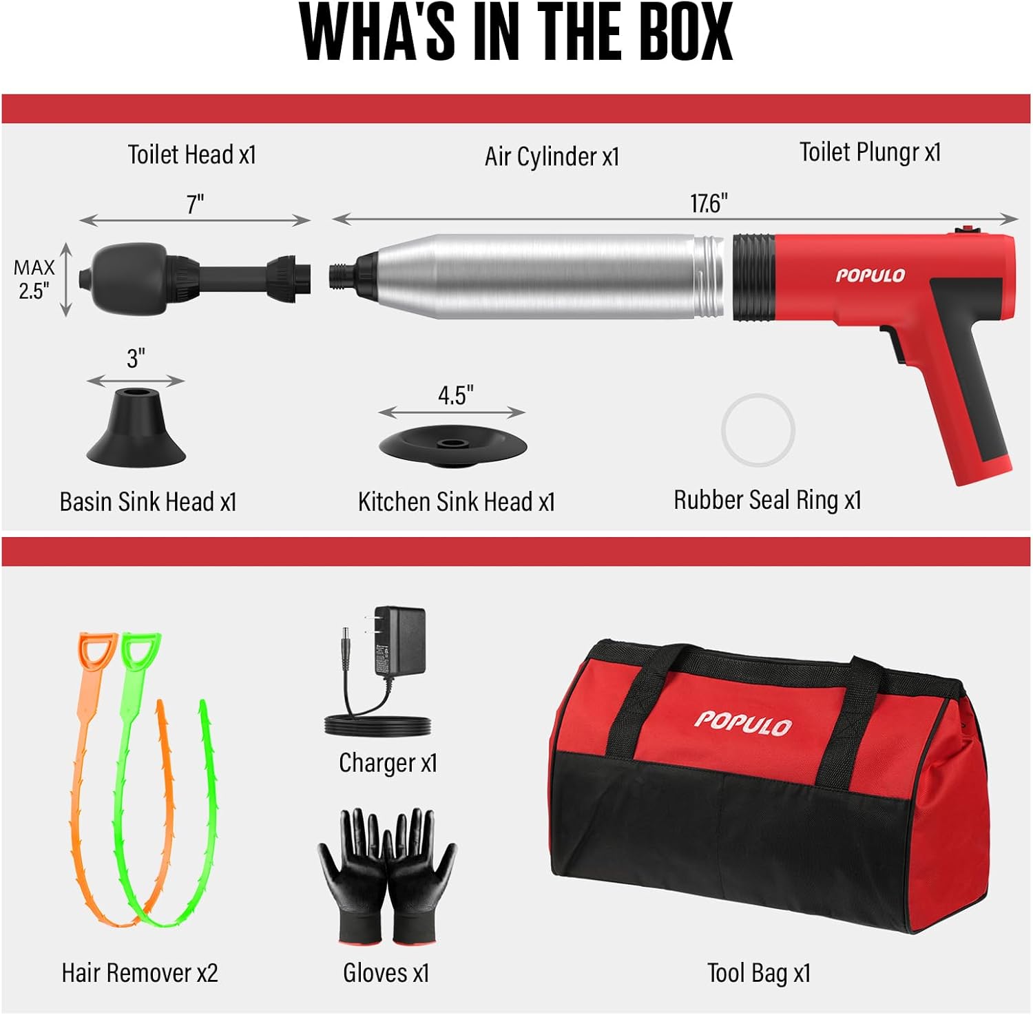 - Calidad de confianza, tranquilidad: la satisfacción del cliente es nuestra máxima prioridad. Populo es una marca de confianza en el campo de los limpiadores de desagües, y tenemos plena confianza en la calidad de nuestro producto. Es por eso que ofrecemos una generosa garantía de dos años, brindándole tranquilidad. Experimenta la potencia y la comodidad del émbolo Populo Air y nunca más te preocupes por los desagües obstruidos. Consigue el tuyo hoy y disfruta de un hogar más limpio y saludable.