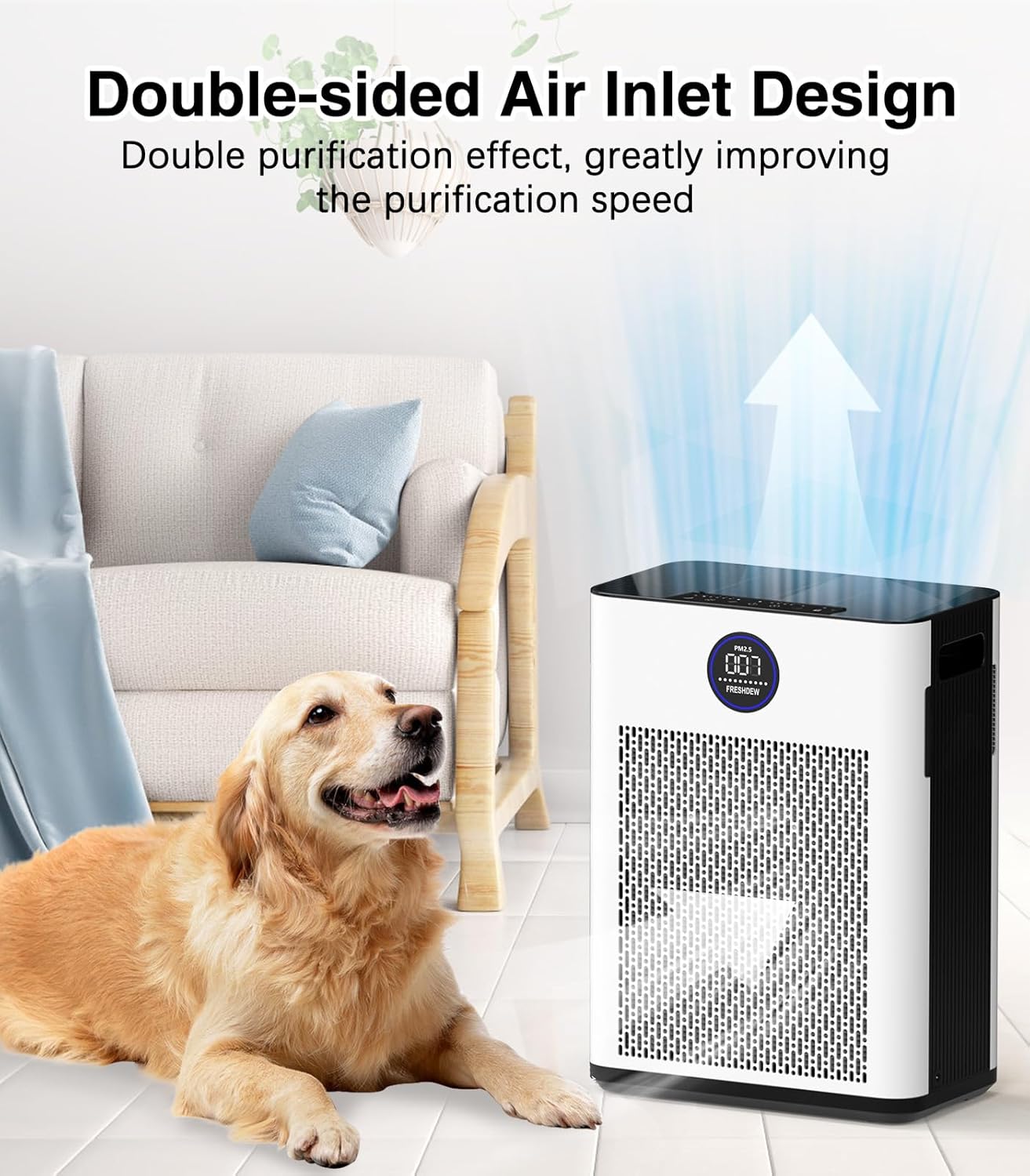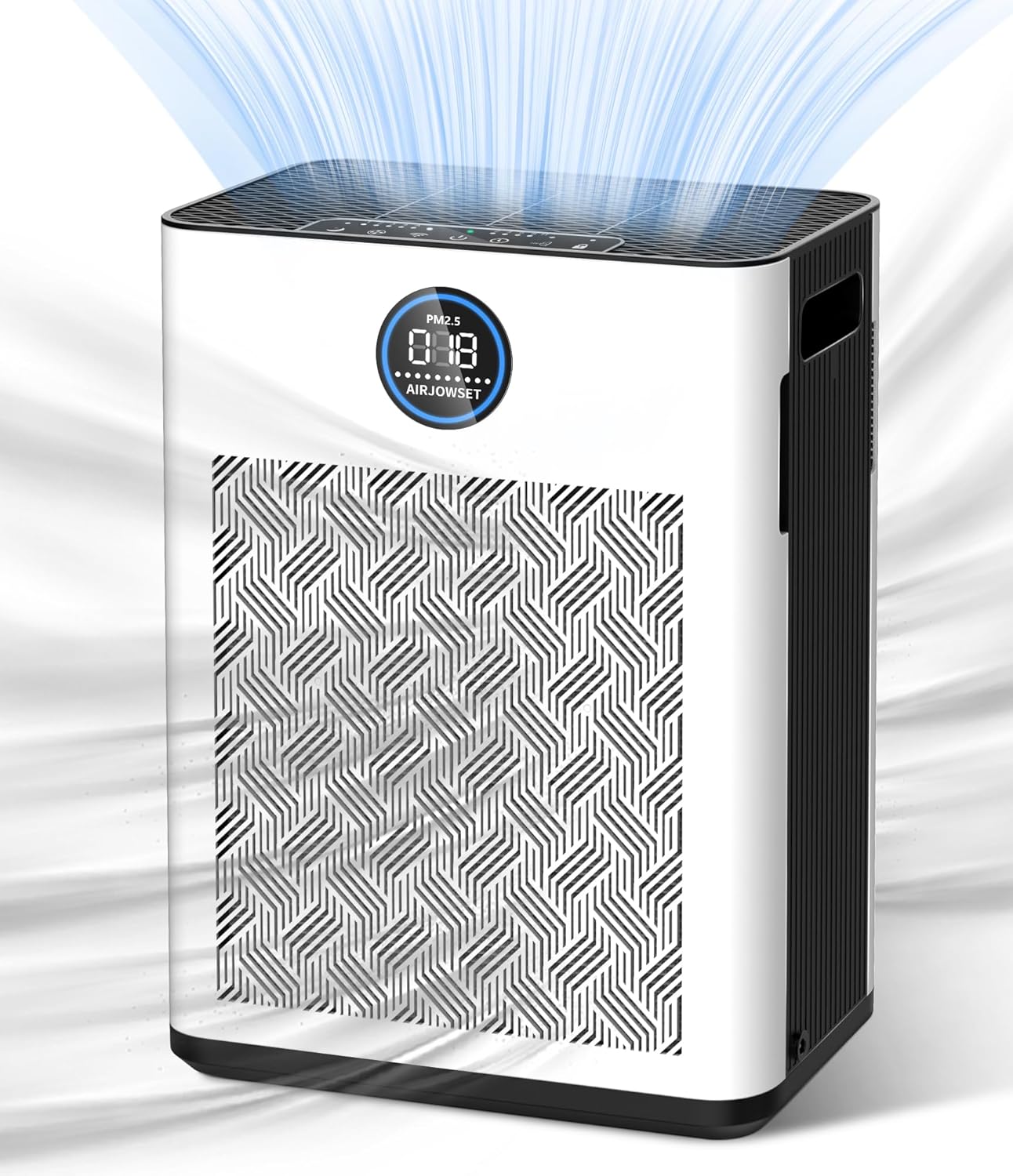 - Toma de aire de doble cara altamente eficiente. Con 2 filtros HEPA en ambos lados, el purificador de aire AIRJOWSET logró una entrada de aire de doble cara, lo que aumenta la velocidad de filtrado de aire. Este purificador de aire de uso doméstico es para habitaciones grandes de hasta 2800 pies cuadrados, adecuado para sala de estar, dormitorio, hogar de mascotas, oficinas, guardería, habitación del bebé, cocina, sótano, sala de fumadores, etc.