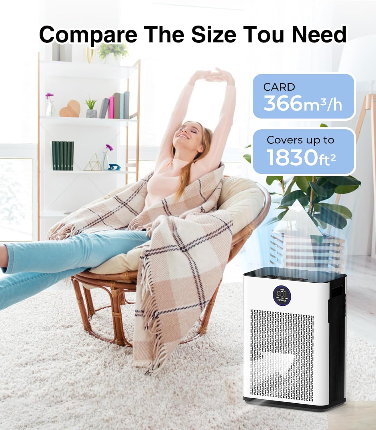 - 4 temporizadores y 4 velocidades de ventilador: el purificador de aire de habitación tiene 4 velocidades de ventilador ajustables, 1/2/3/Turbo para que elijas. Una velocidad más rápida mejorará la eficiencia de la filtración de aire, mientras tanto, el ruido será más fuerte. Pero el ruido máximo es de solo 58 dB, simplemente siéntete libre de usarlo. Y 4 ajustes de temporizador 2/4/6/8H para satisfacer tus diferentes necesidades.