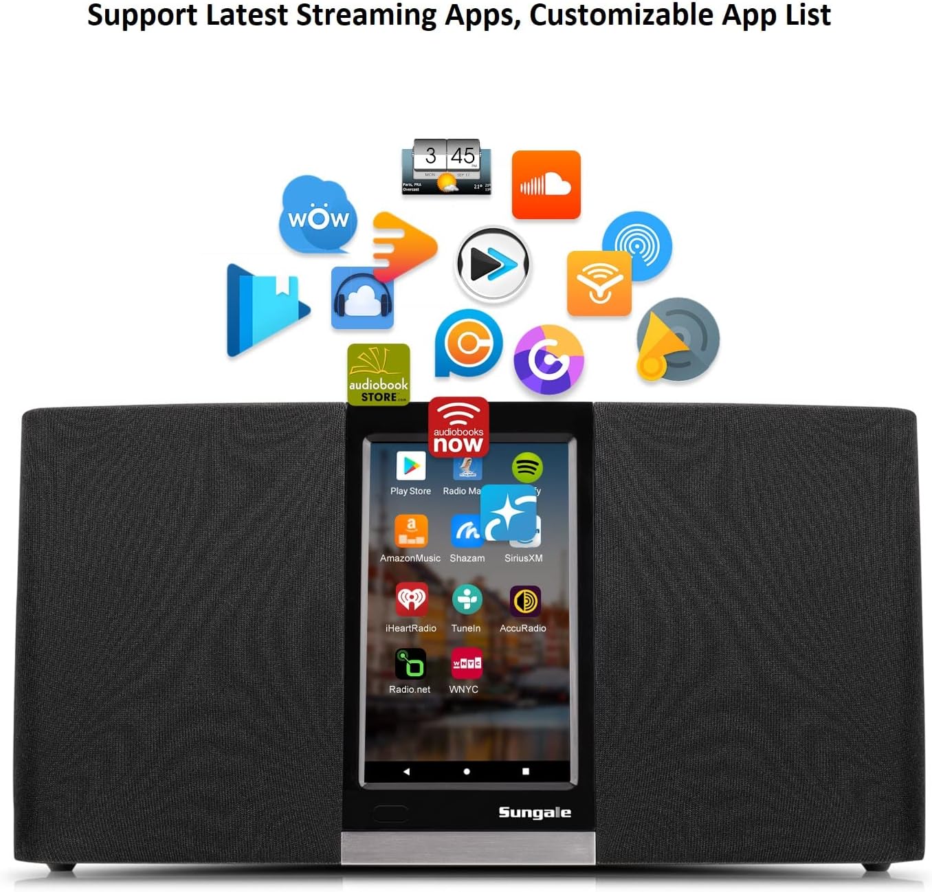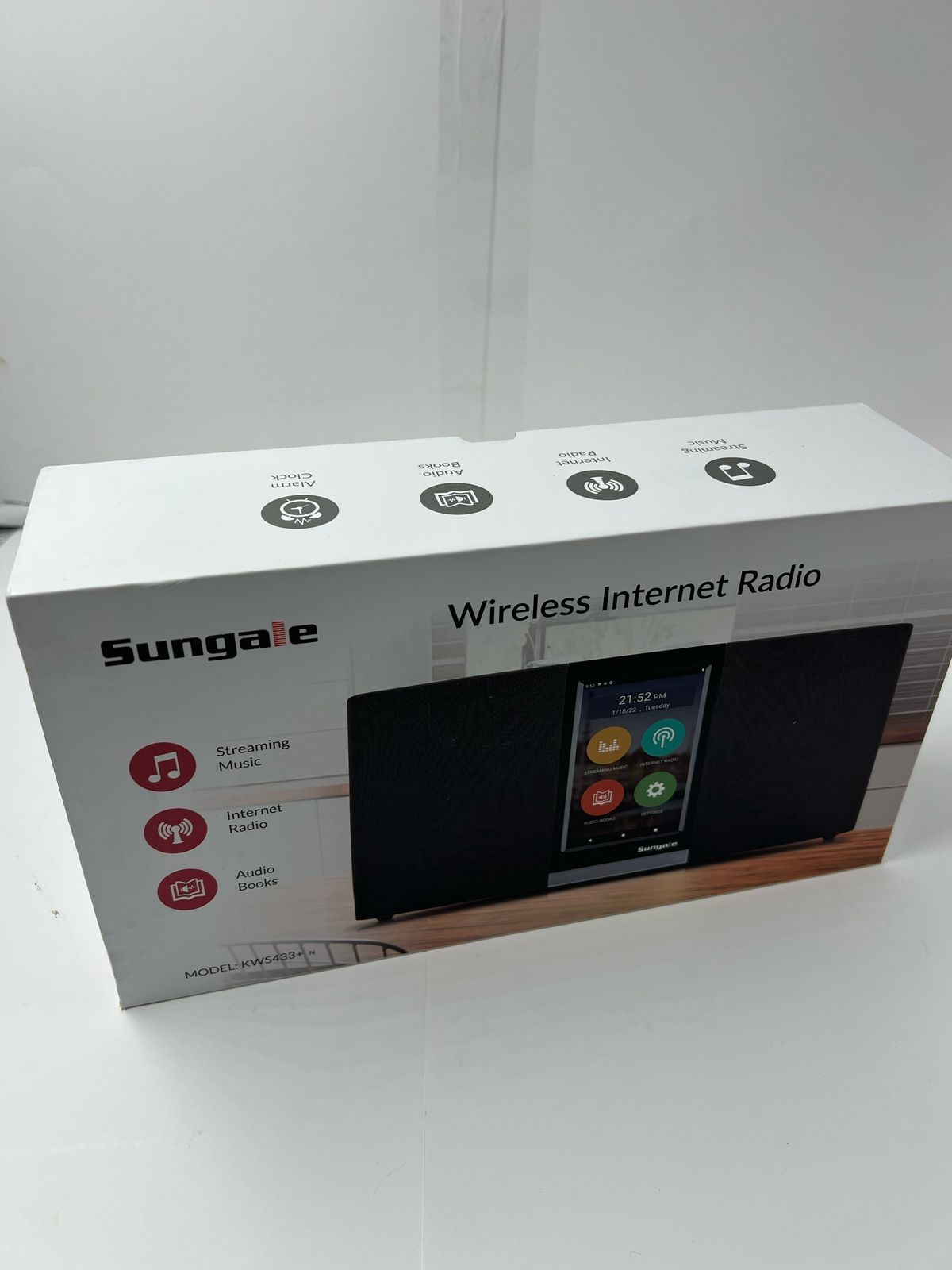 Disfruta de una entretenida experiencia musical con la radio por internet Wi-Fi Sungale KWS433+. Escucha música en streaming desde dos altavoces de alta potencia a través de fuentes en línea como iHeartRadio, Pandora, Tune In, Spotify y muchas más. Simplemente establece una conexión Wi-Fi, encuentra tu fuente preferida y empieza a escuchar música en streaming desde más de 18,000 estaciones de radio por internet. Usa la pantalla táctil LCD para navegar por la interfaz intuitiva. También puedes transferir tus archivos de música favoritos a los 16 GB de almacenamiento flash de la radio por internet. Su diseño ultradelgado y ligero, junto con una batería de iones de litio integrada, permite portabilidad y varias horas de música sin necesidad de recargarla. Olvídate de los voluminosos y anticuados equipos de música y dale la bienvenida a la radio por internet Wi-Fi Sungale KWS433+.