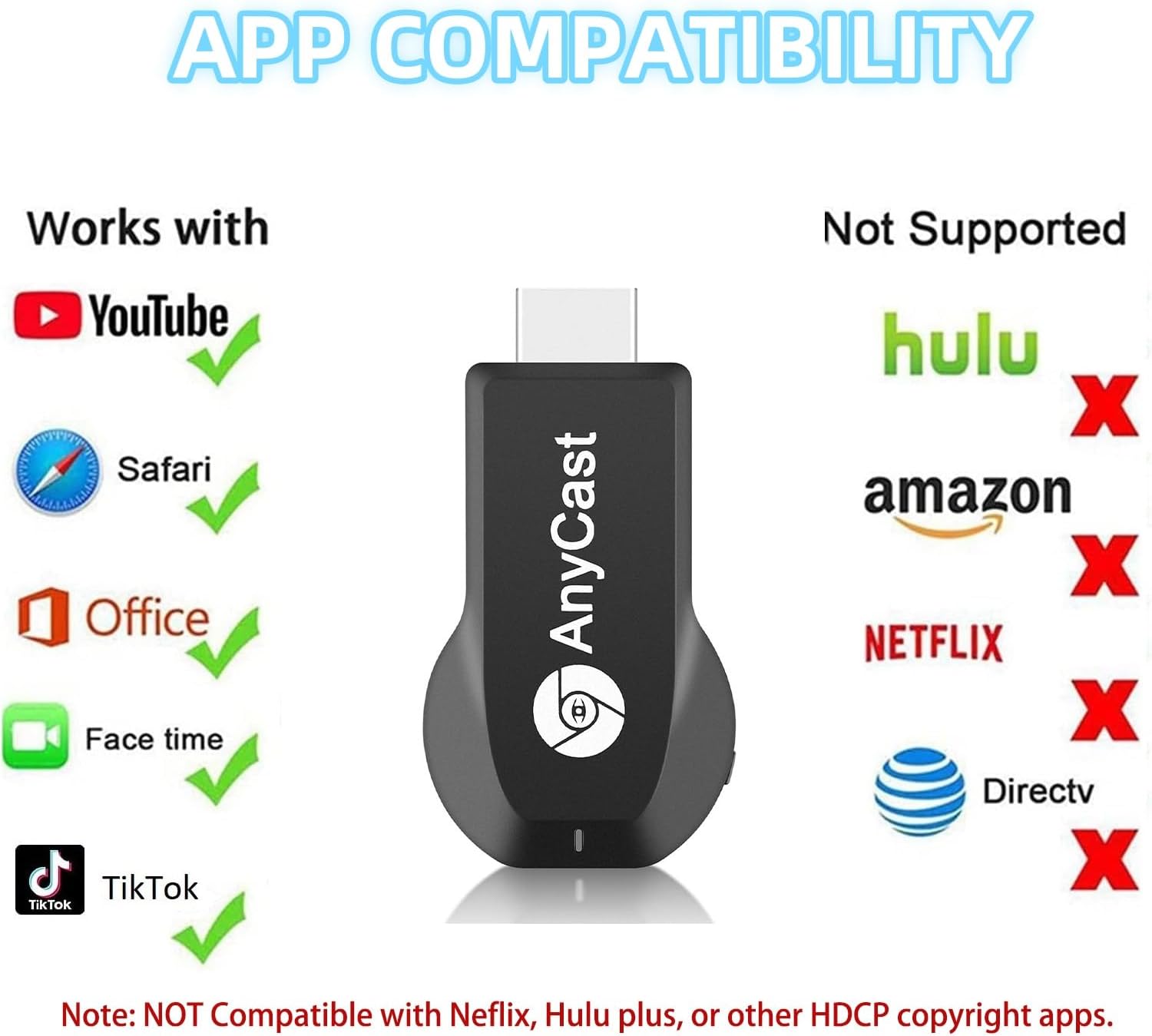 - Transforma tu televisor en un centro de entretenimiento inteligente con el Receptor Inalámbrico AnyCast M2 Plus. Conecta sin cables tus dispositivos móviles, tablets y computadoras directamente a tu pantalla mediante WiFi, disfrutando de contenido en 1080P con claridad excepcional. Compatible con Airplay, DLNA y Miracast, este adaptador HDMI te permite compartir videos, fotos y música desde cualquier plataforma.