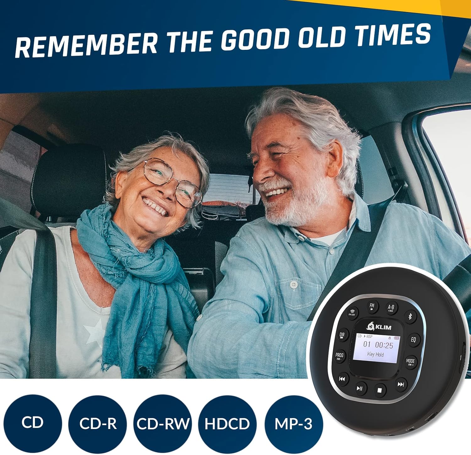KLIM Journey, reproductor de CD portátil con batería de larga duración, nuevo 2024, con auriculares, radio FM , reproductor de CD MP3 compatible portátil, tarjeta SD, transmisor FM, Bluetooth .
