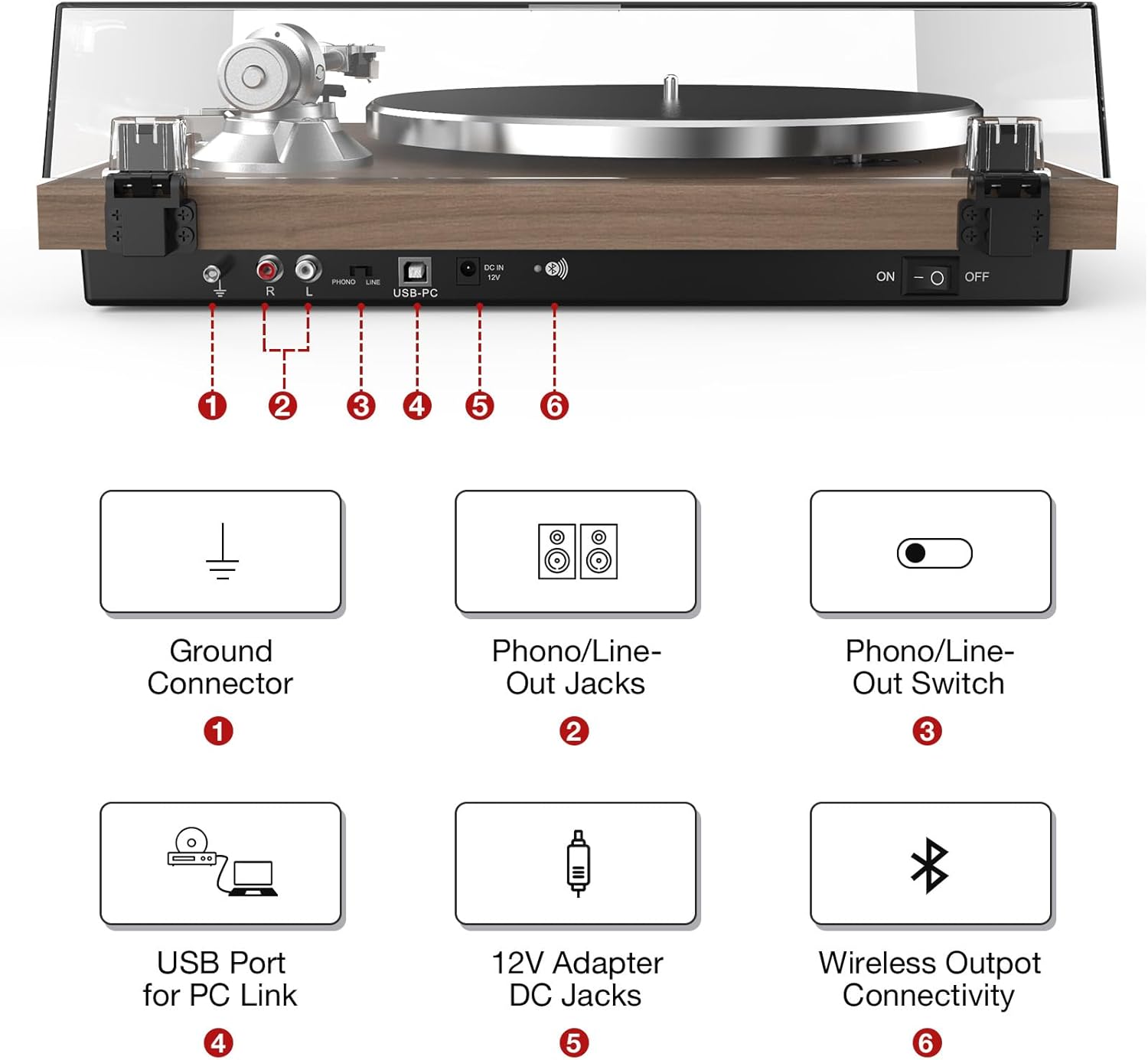 - Grandes opciones de conectividad: Disfruta de la reproducción de vinilo con cualquier amplificador utilizando el preamplificador de PHONO de tipo magnético integrado. Este tocadiscos incluye salidas de Phono y Line que permiten reproducir vinilo con o sin un ecualizador Phono.