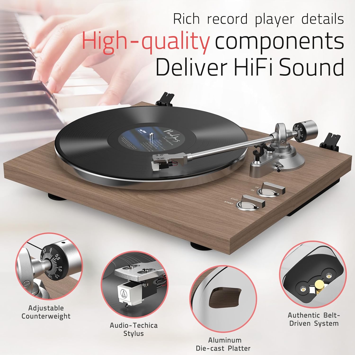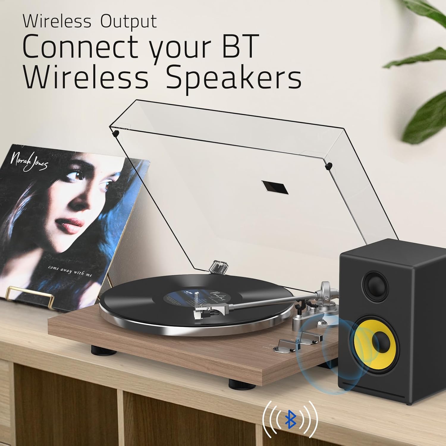 - Grabación de vinilo USB a PC: conecta este tocadiscos a tu computadora a través de USB y codifica audio de vinilo en MP3 para almacenamiento y reproducción digitalizados en tu computadora, teléfono inteligente o tablet. Lleva tus vinilos favoritos contigo sobre la marcha.