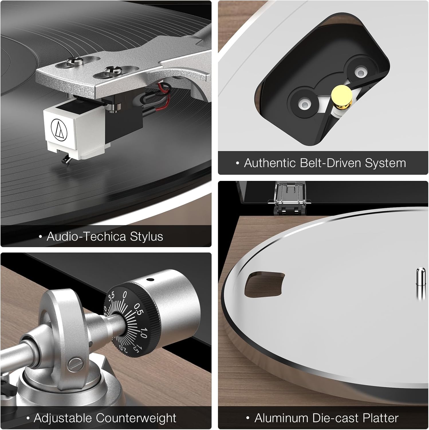 - Fuerza de contrapeso ajustable: equilibrando el brazo de tono y ajustando el peso adecuado del lápiz para lograr una reproducción precisa. Obtén una reproducción perfecta cada vez con el contrapeso tonarm y el avanzado sistema antipatinaje. Esto garantiza que el lápiz esté equilibrado y descanse profundamente en la ranura de tu disco, produciendo un movimiento suave del lápiz capacitivo, protegiendo tus registros de daños.