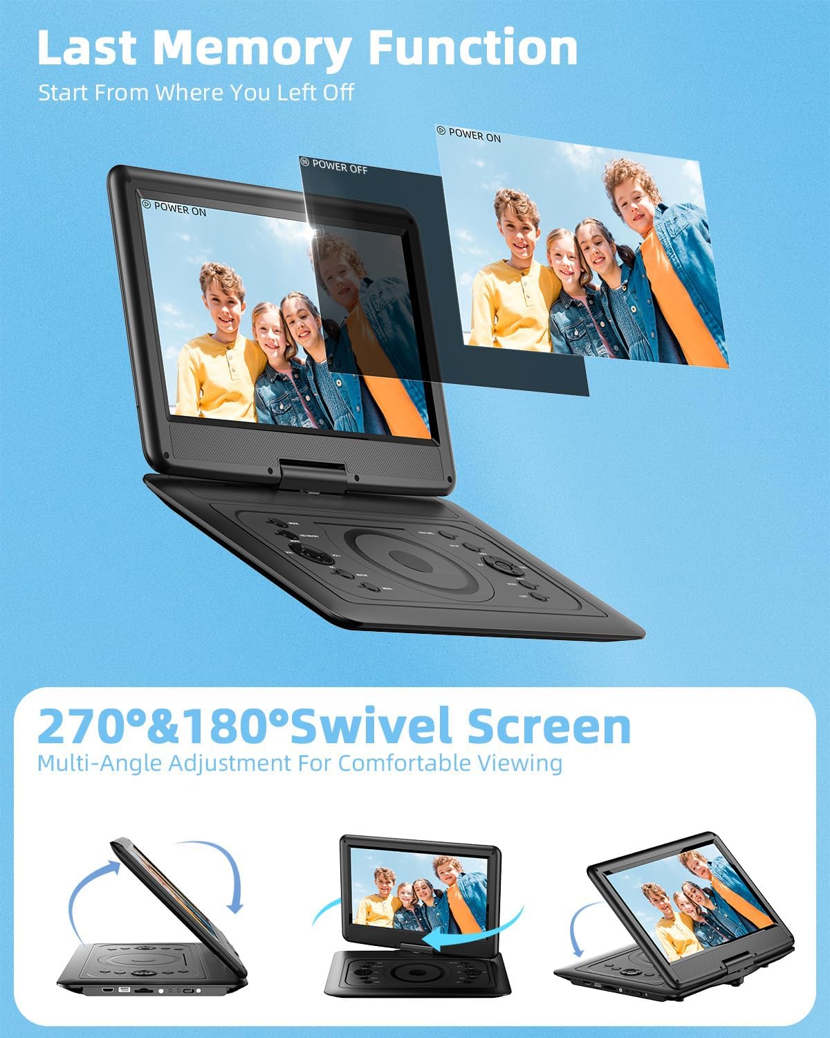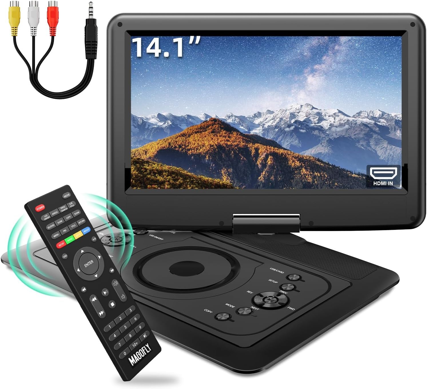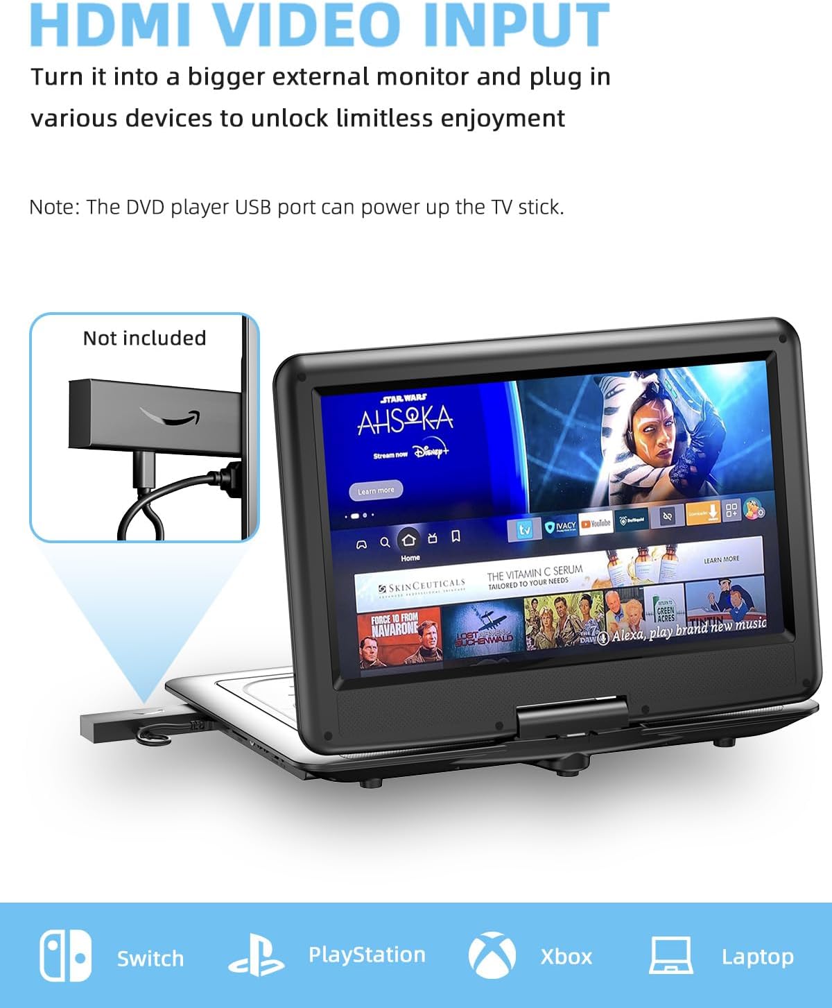 - Función versátil de entrada HDMI: desbloquea infinitas posibilidades con funcionalidad de entrada HDMI, lo que permite una conectividad perfecta con dispositivos externos como consolas de juegos como PS, Xbox e Switch. Transforma tu reproductor de DVD portátil en una visualización externa versátil, lo que te permite disfrutar de juegos, streaming y más en una visualización más grande con una comodidad inigualable.