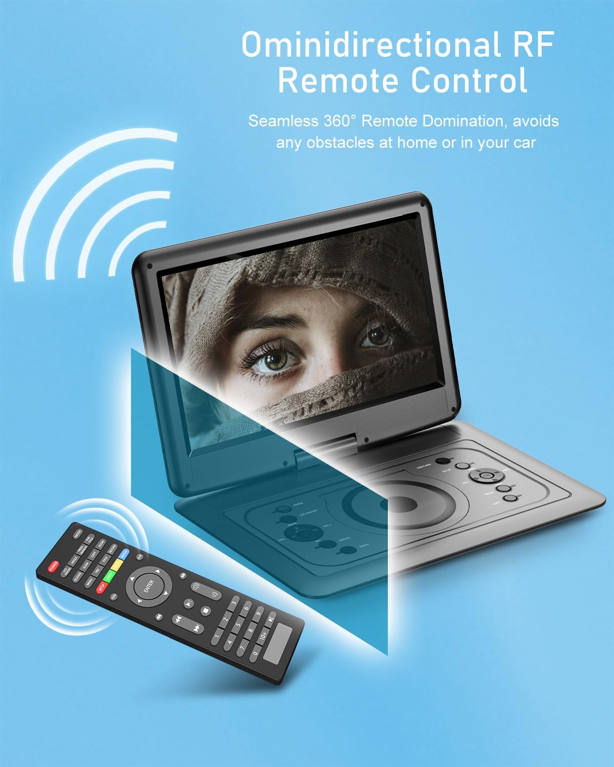 - Control remoto RF sin costuras mejorado de 360 °: eleva tu experiencia de DVD portátil con nuestro control remoto RF, conquistando sin esfuerzo las barreras de señal. Disfruta de un control total desde cualquier ángulo, asegurando una comodidad y comodidad inigualables navegando por tus películas o programas de televisión favoritos. Despide la molestia de apuntar: este avanzado control remoto elimina la precisión de la ecuación. Di adiós a los obstáculos y acepta el entretenimiento ininterrumpido.