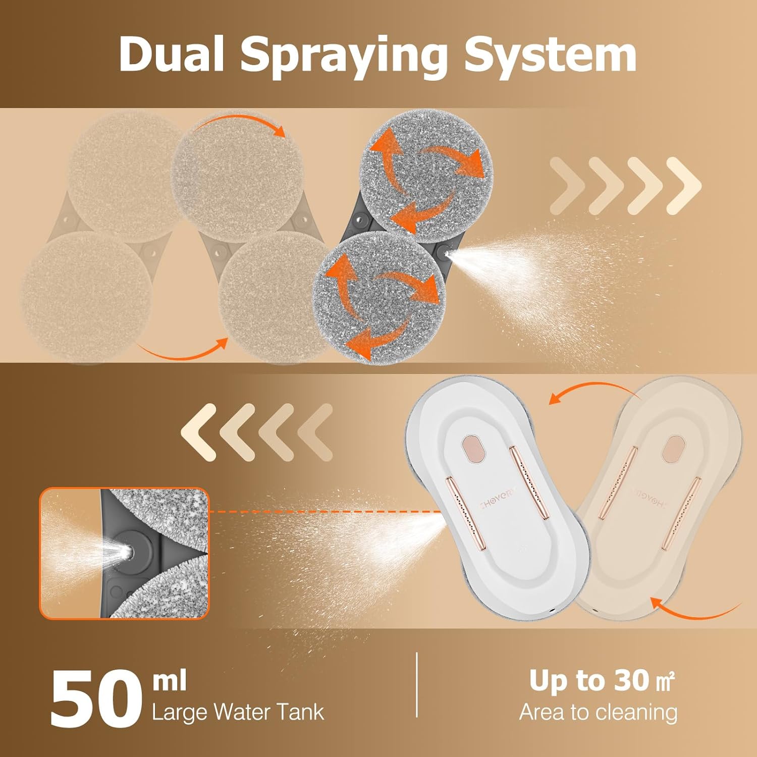 - Spray automático de doble cara: el robot de limpieza de ventanas CL3 ha mejorado las salidas de agua de doble cara que garantizan una cobertura completa del área de limpieza. Nuestra aspiradora de ventana puede quitar eficazmente las manchas en tus ventanas. El robot tiene un volumen promedio de pulverización de agua. Puede limpiar hasta 30 ㎡ de ventanas a la vez sin deslizarse. Tampoco te preocupes que el agua fluya al alféizar de la ventana como otros.