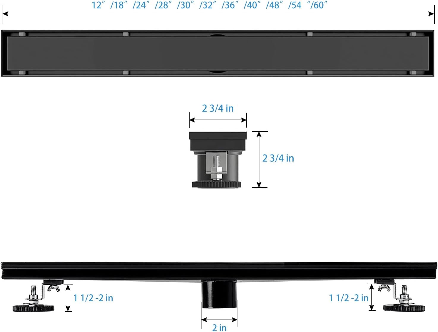 - Tamaño y desplazamiento: el tamaño del drenaje de ducha lineal SaniteModar es de 24 x 2.8 x 2.5 pulgadas. El diámetro de la salida es de 2 pulgadas. De acuerdo con la mecánica de ingeniería mejorada ranura de desviación en forma de X, se puede lograr un alto desplazamiento con un promedio de 60 l/min sin malla de filtro. Puede eliminar la humedad residual en la parte inferior de manera efectiva