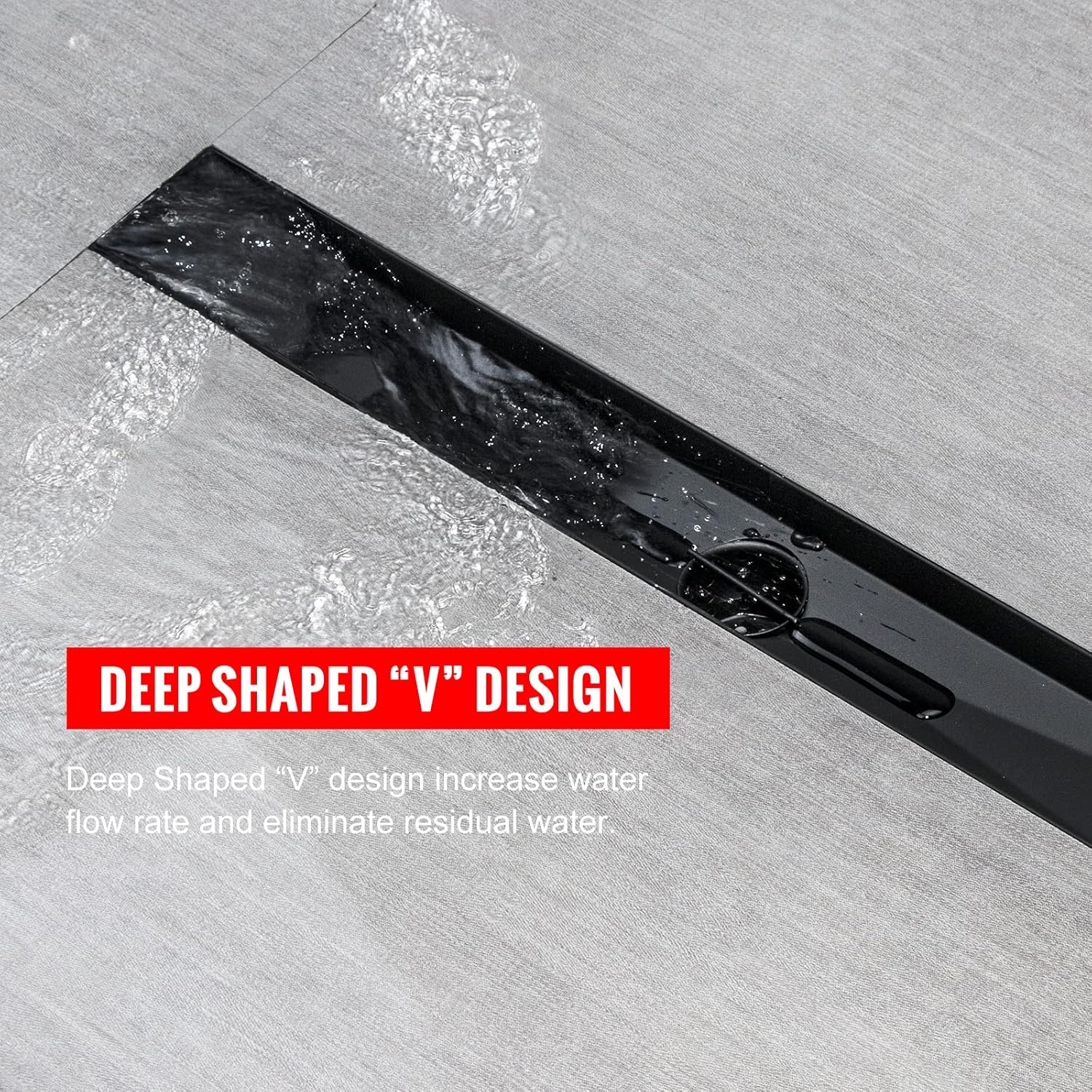 - Áreas de aplicación: El alto desplazamiento del desagüe de ducha lineal es adecuado para su uso en baños, cocinas, garajes, sótanos y otras áreas para drenar el agua