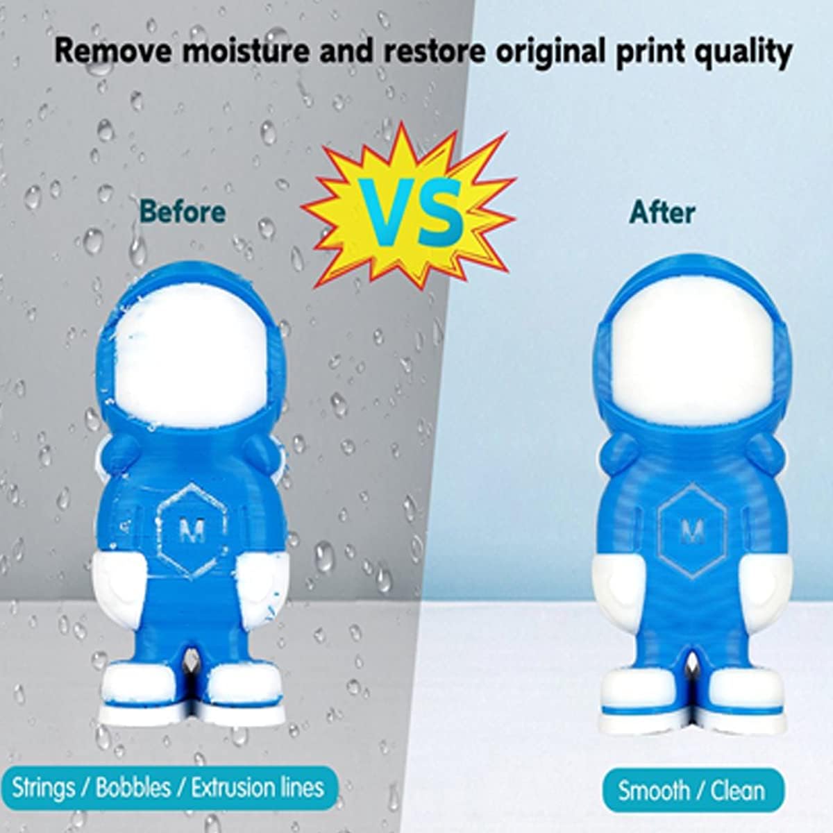 - Excelente modo de secado con la caja apagada: el sellado de silicona y PTFE hace que sea posible almacenar filamentos durante mucho tiempo sin la caja encendida y protege tus filamentos de la humedad y la suciedad. Puedes poner 4 bolsas de desecante (no incluidas en el paquete) dentro de la caja secadora para mejorar la eficiencia y la calidad del secado.