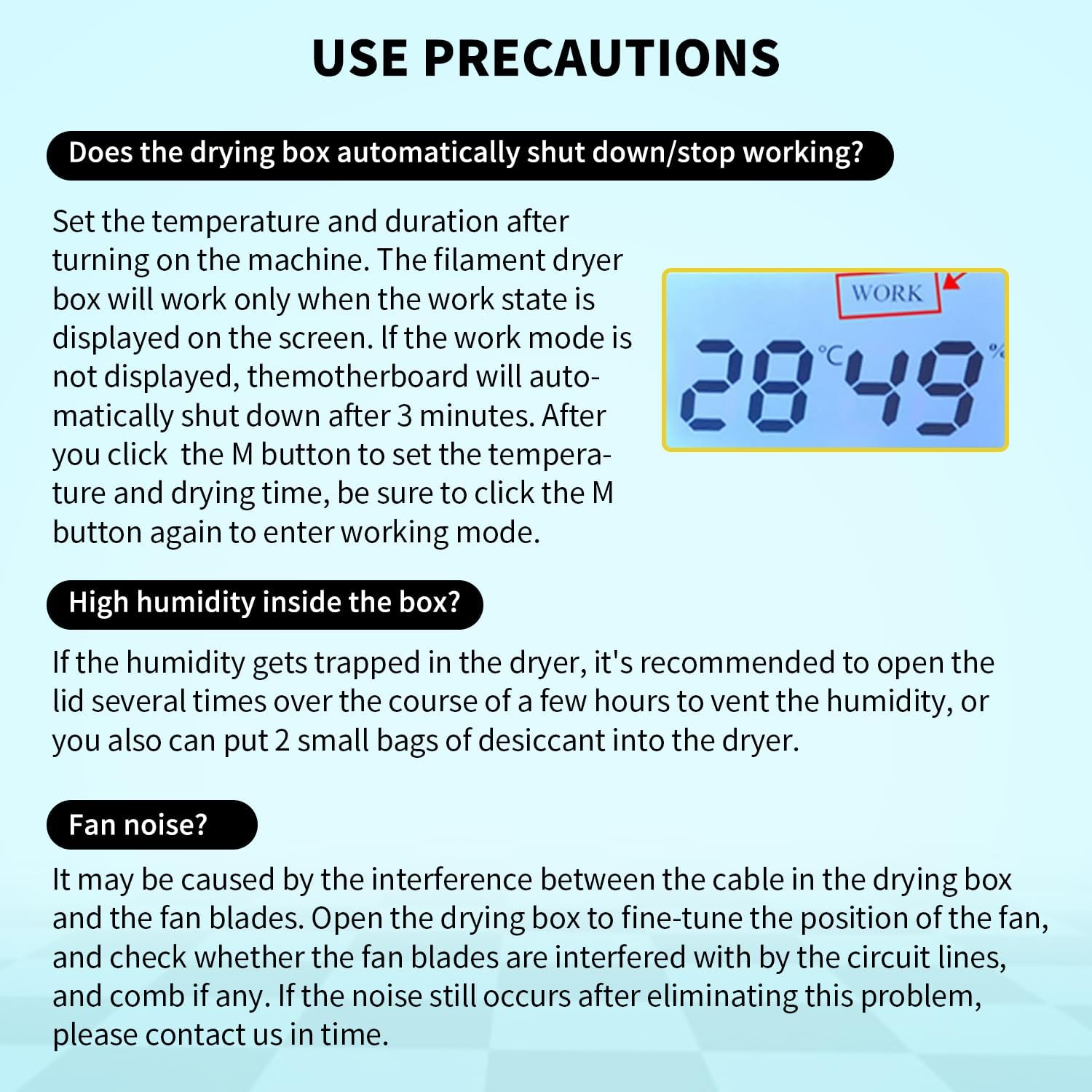 - Calentamiento más uniforme: el diseño único del ventilador integrado en la caja se basa en el principio de termodinámica del aire; consigue que el filamento se caliente de manera más uniforme. La caja consigue un secado más eficiente. - -