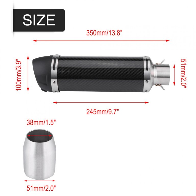 Viene con un adaptador de soldadura de 51 mm, apto para la mayoría de motocicletas, quads y scooters con tubos de escape de 38 mm de diámetro a 51 mm.