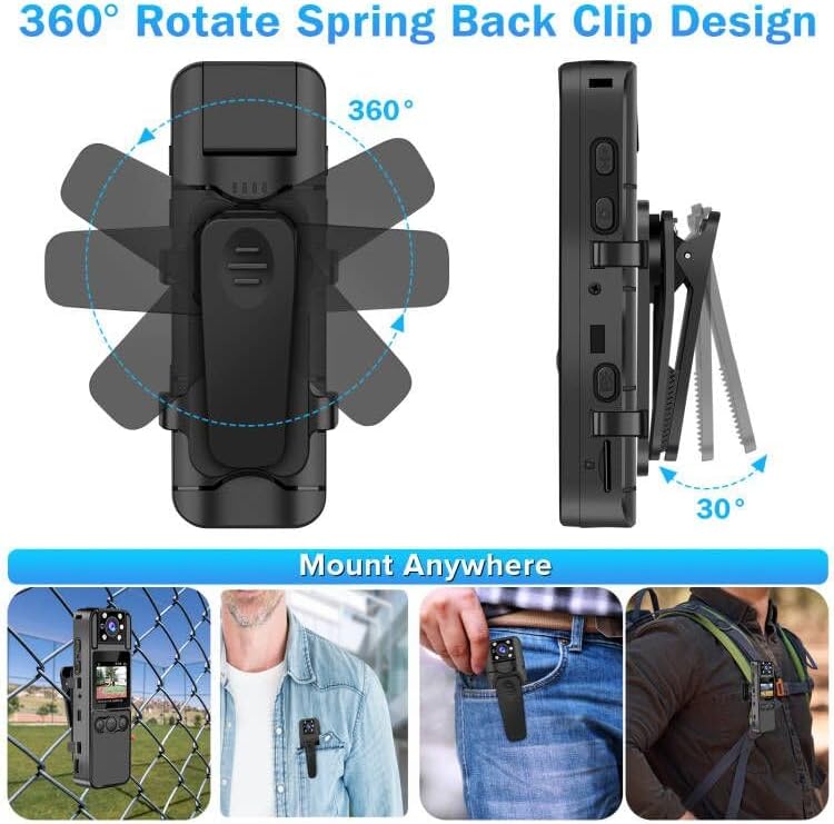 - Cámara Full HD 1296P: utilizando tecnología de vanguardia, la cámara corporal Sixmou B9 captura vídeos y fotos con una impresionante resolución HD 1296P, superando el normal 1080P. Grabación de imágenes nítidas durante diversas actividades como las fuerzas del orden, trabajos de seguridad, viajes, paseos, carreras y mucho más. Siéntase última intervensión de comparar su rendimiento con otras marcas.