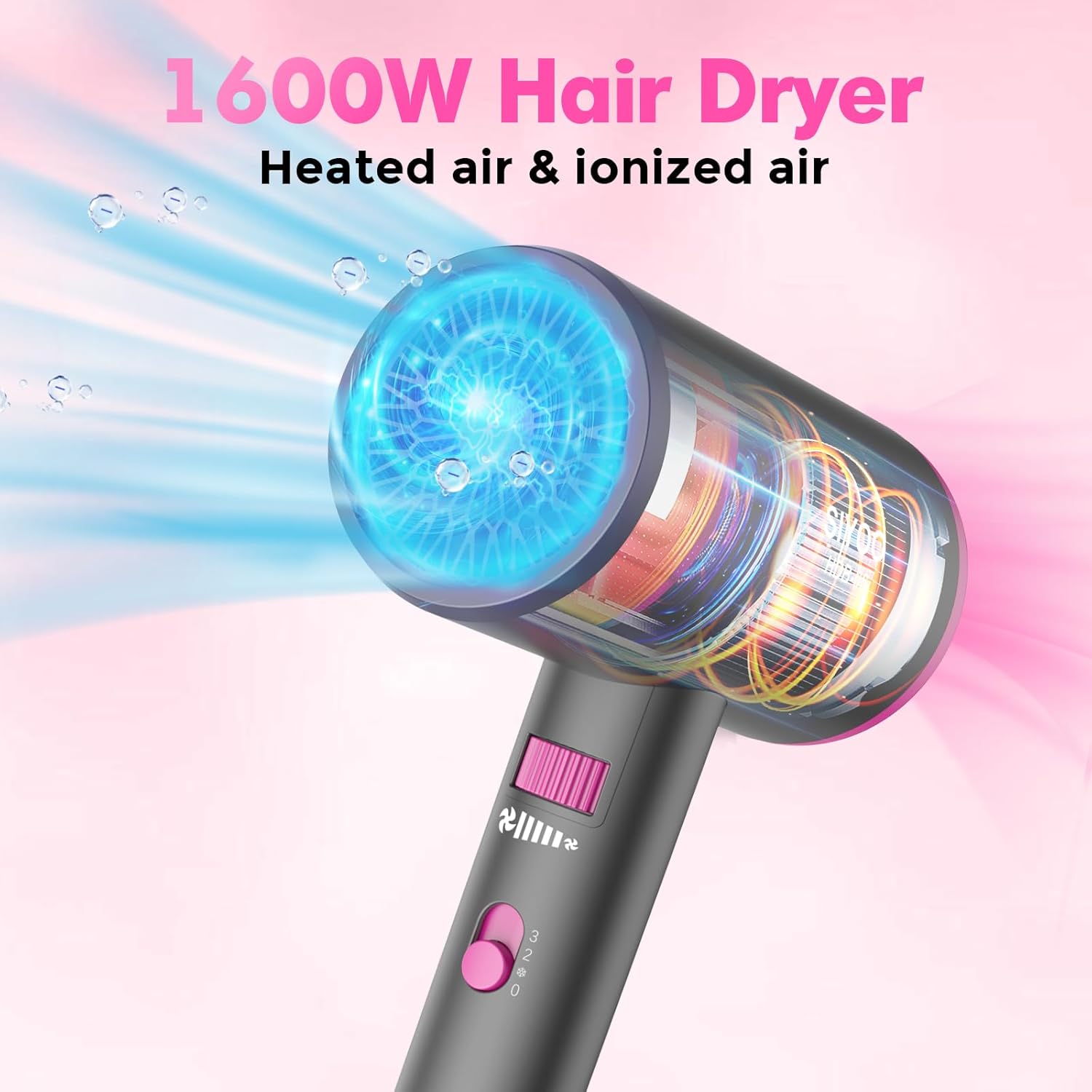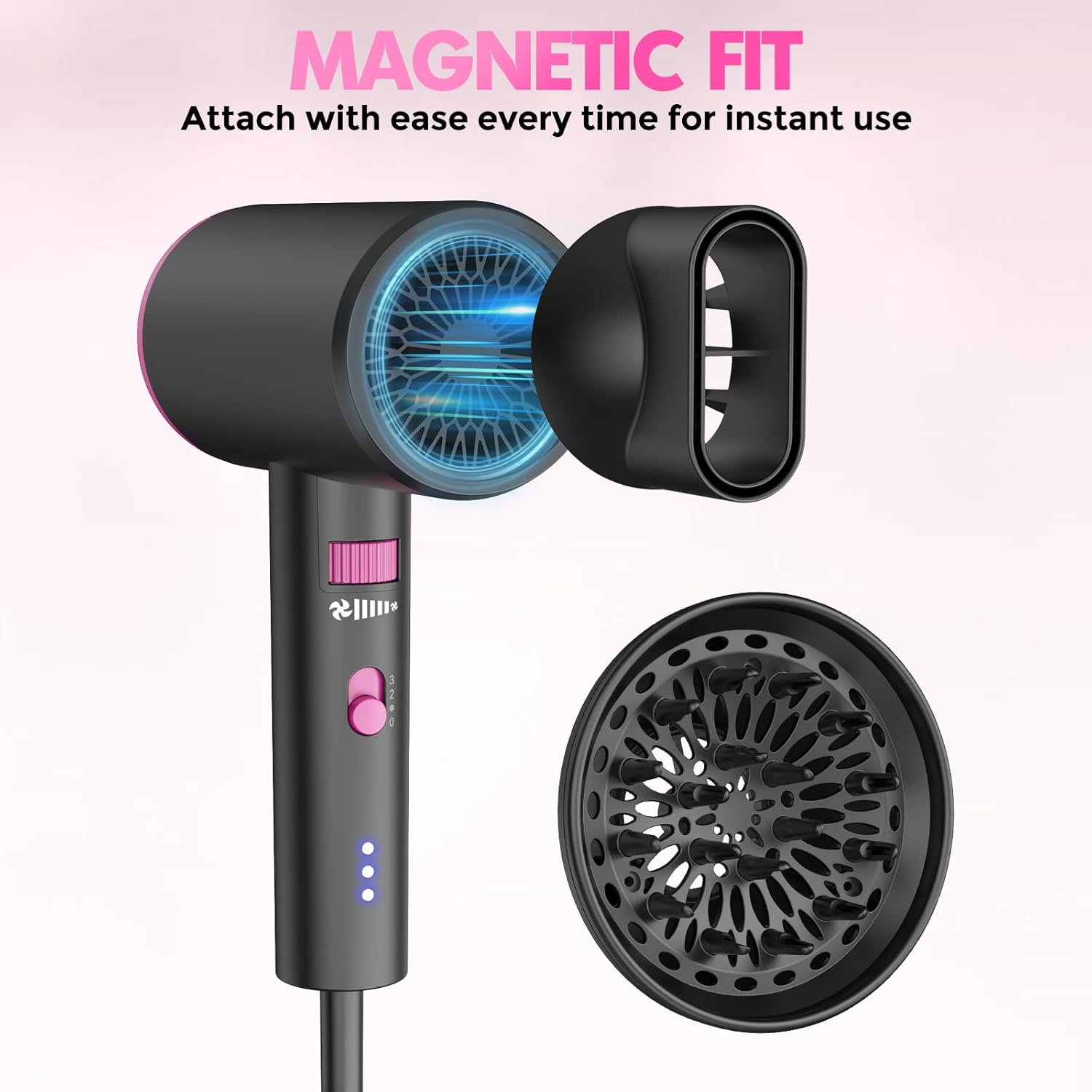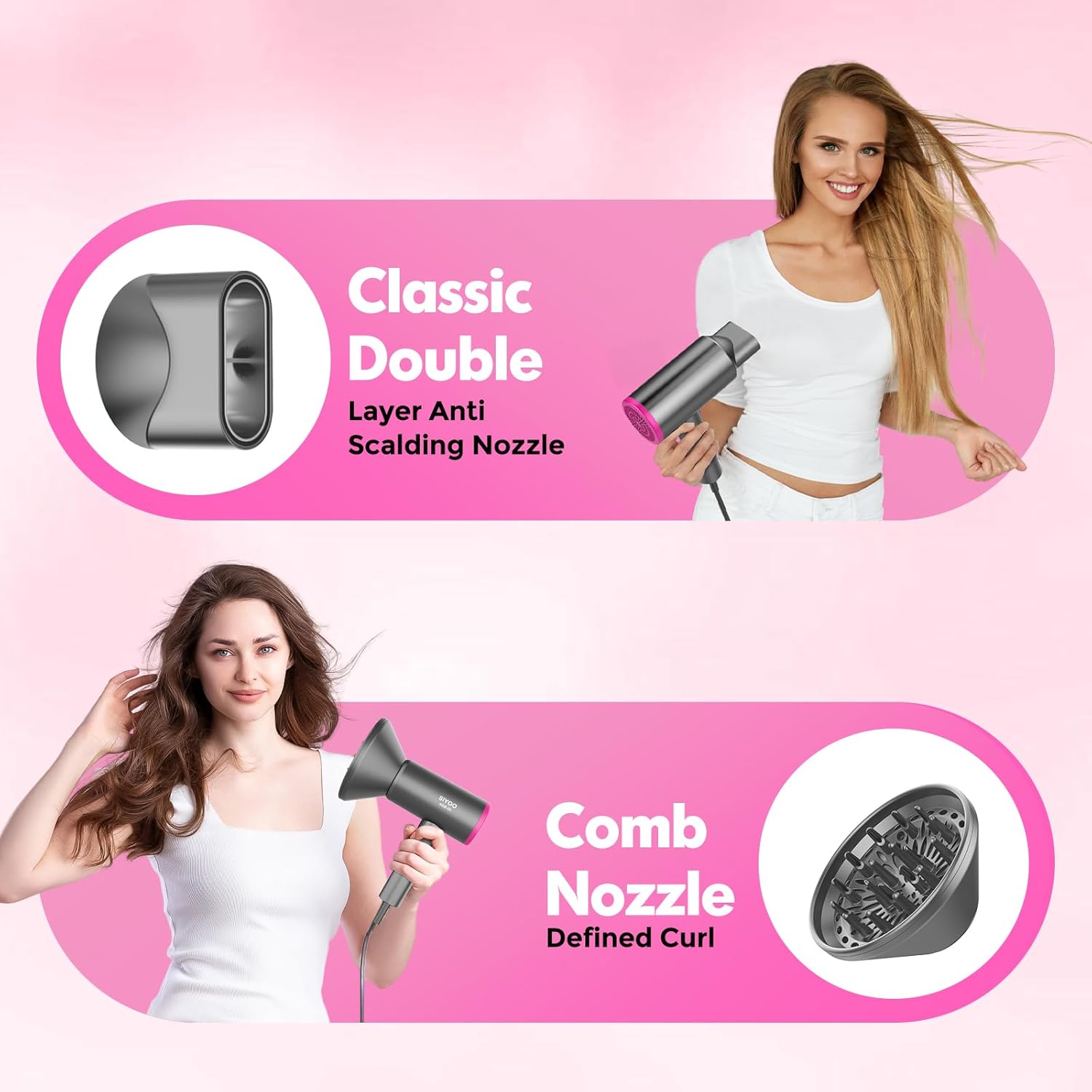 - Funcionalidad universal: ya sea rizado, liso, fino o grueso, 1 difusor y 1 boquilla concentradora antiquemaduras de doble capa, satisface con precisión las necesidades de todos los estilos de cabello.
