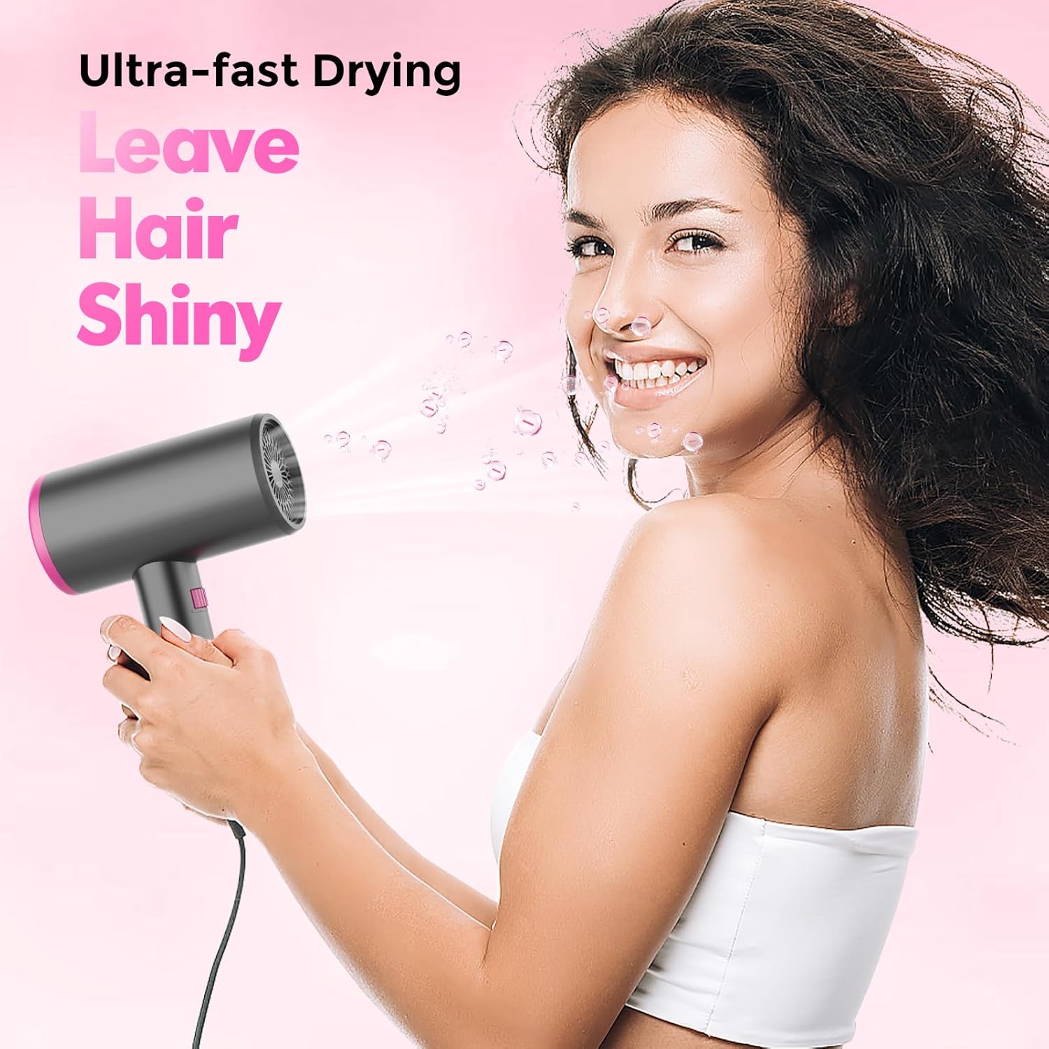 - Diseño humanizado y magneto: nuestro secador de pelo viene con un filtro extraíble de doble seguridad, para que tu cabello no se absorba en la secadora y también puedes usarlo como un secador de pelo de viaje, ya que es ligero y portátil. Los accesorios magnéticos son más cómodos de usar.