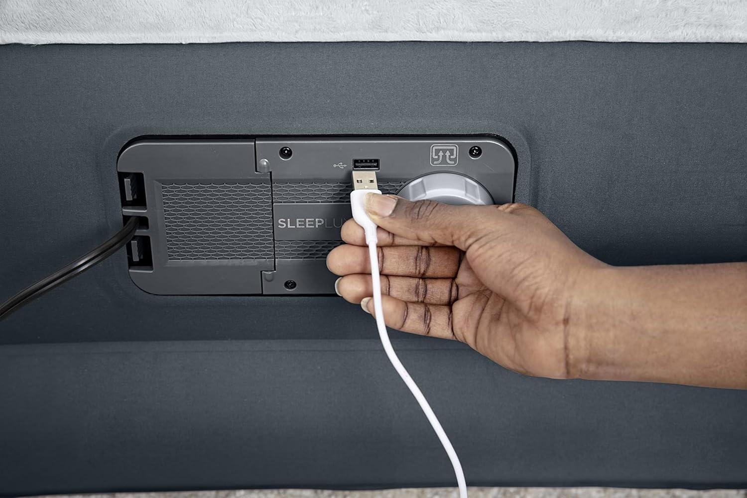 - Carga tu dispositivo: nuestras camas de aire cuentan con un puerto USB integrado para una cómoda carga de dispositivos electrónicos. No más problemas para encontrar la salida más cercana. Carga tu teléfono mientras duermes con facilidad.