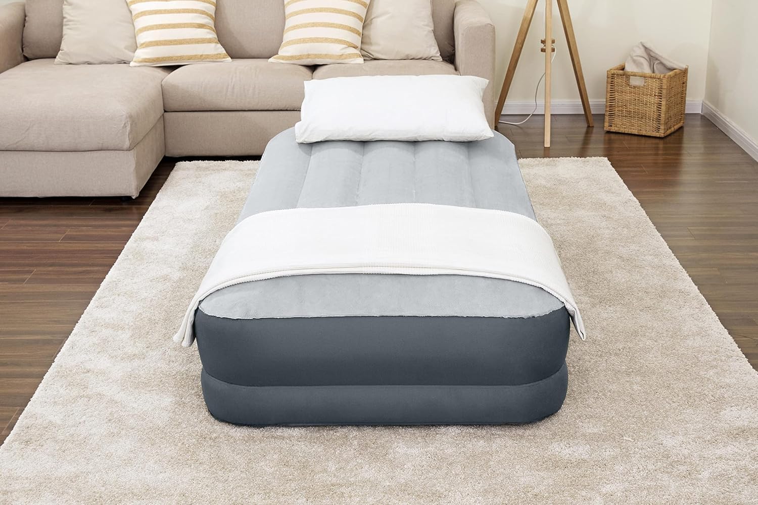 - Se infla y se desinfla con cero esfuerzo: la bomba integrada (110-120V) infla silenciosamente el colchón de aire en solo 3-4 minutos con solo pulsar un botón. No perderá aire, por lo que no perderá sueño.