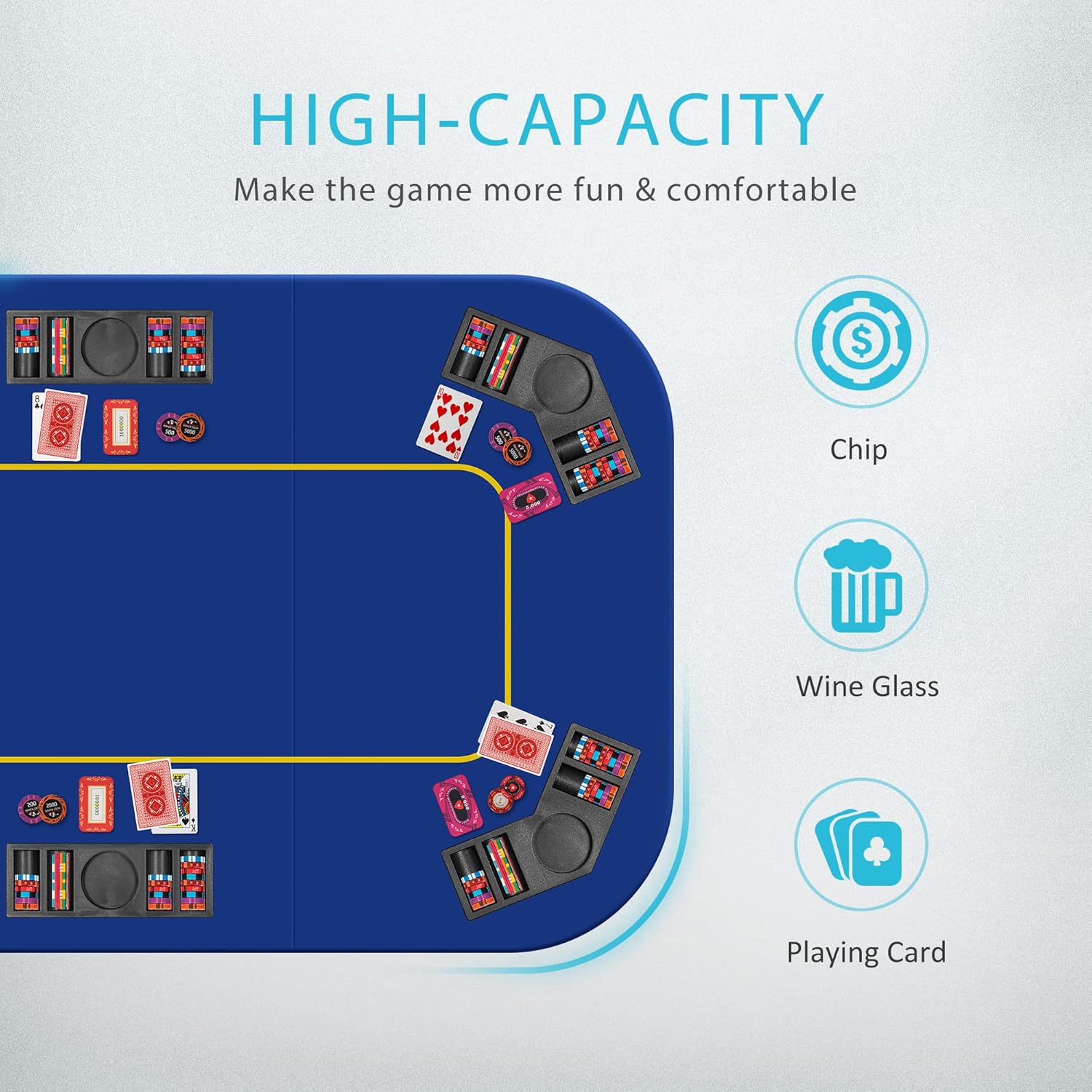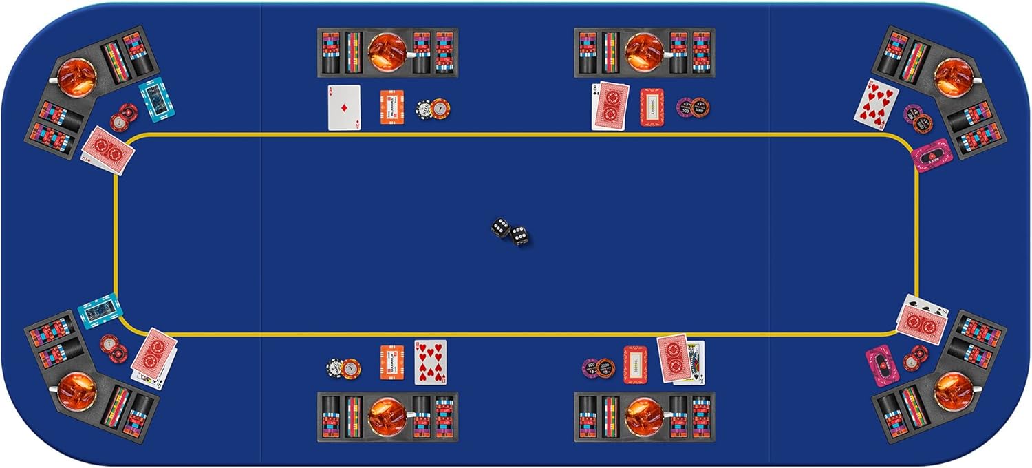 Aspecto profesional: la estructura de la mesa con un diseño de corte rectangular puede acomodar perfectamente a 8 jugadores; los portavasos independientes y las bandejas de fichas de póquer integradas te traen más diversión y ofrecen un lugar conveniente para guardar tus artículos; juega como si estuvieras en Las Vegas.