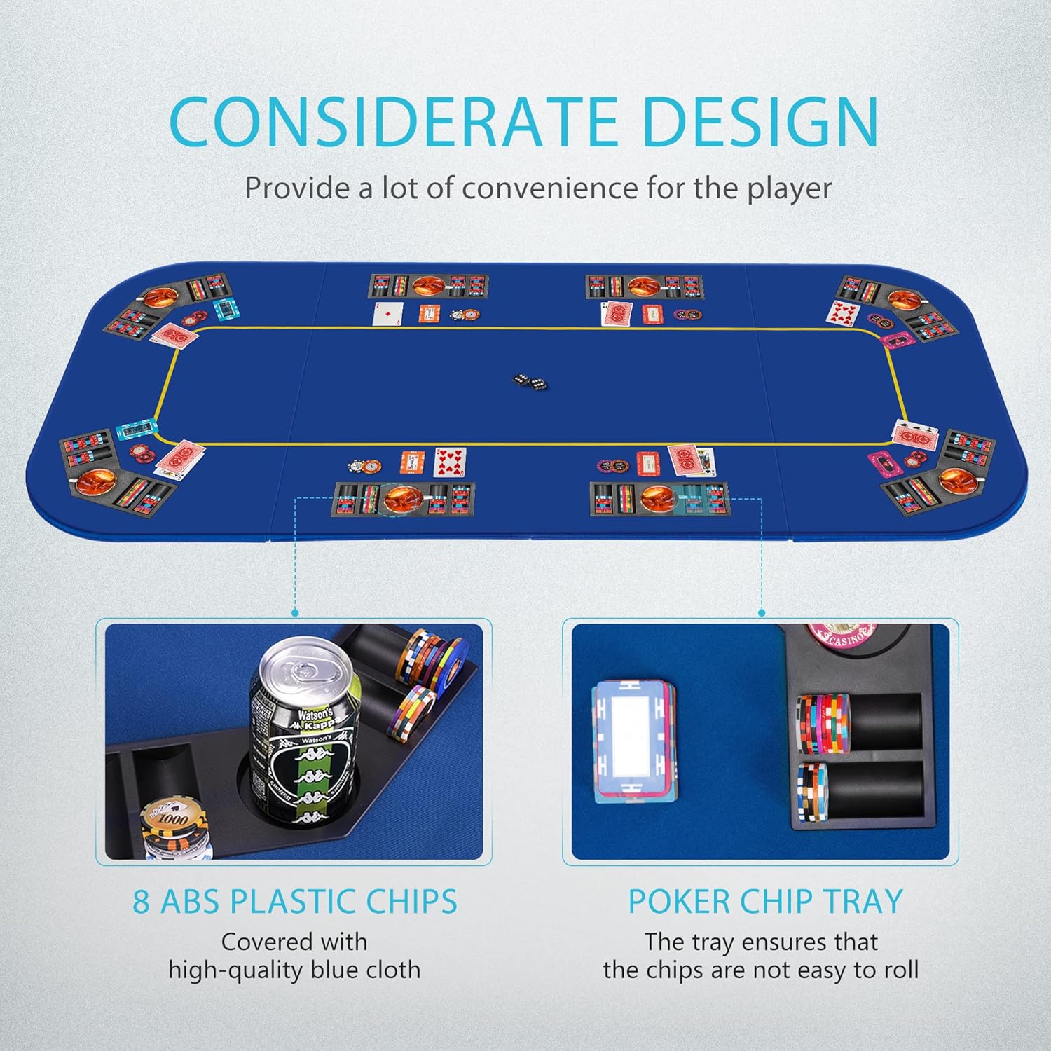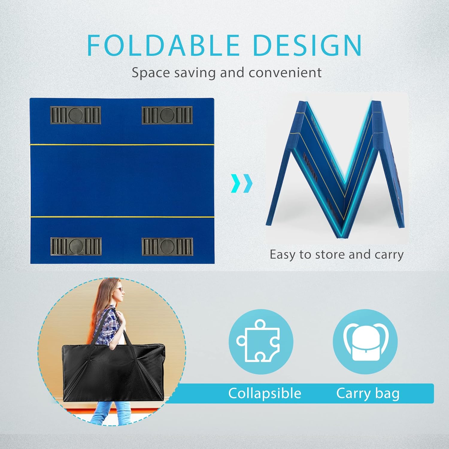 Múltiples escenarios: con nuestro diseño incomparable de 3 pliegues y bolsa de transporte portátil, nunca tendrás que preocuparte por dónde jugar; diseñado para Blackjack, Texas Hold 'em, Bridge, 5 Card Stud y otros juegos de mesa, es adecuado para actividades al aire libre o interior, ya sea camping, picnics, despedidas de soltero, fiestas de portón trasero, reuniones sociales o noches de juegos familiares.
