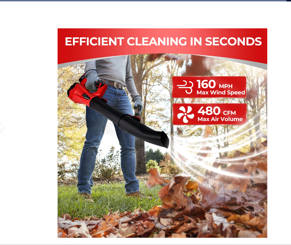 - Rendimiento potente : equipado con un motor de cobre duradero y tecnología de turbocompresor, este soplador de hojas ofrece una velocidad del viento de hasta 160 MPH y un flujo de aire de 480 CFM para una limpieza rápida y eficiente.