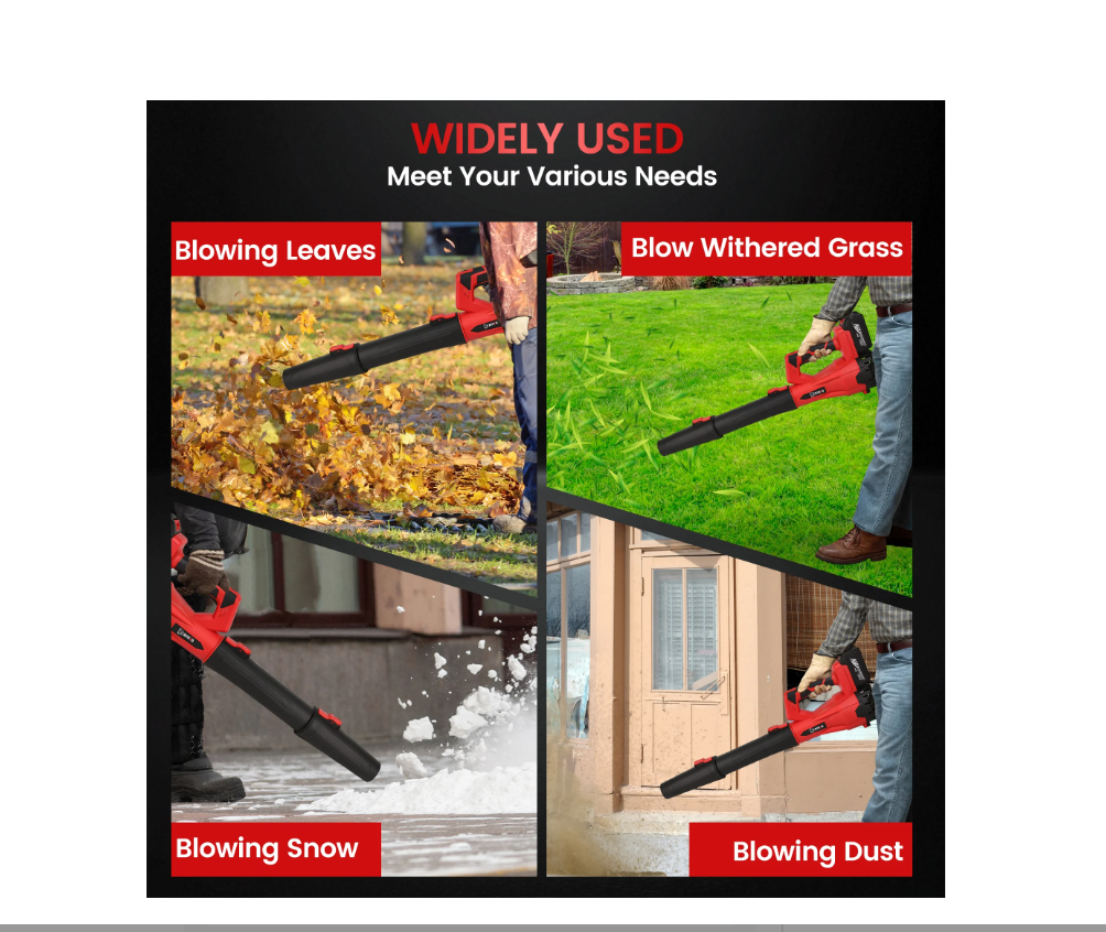 - Versátil para múltiples espacios al aire libre: Perfecto para una variedad de áreas al aire libre, como patios, entradas de vehículos, aceras y senderos de jardín. Ya sea para limpiar hojas del césped, escombros de la entrada de vehículos o polvo de espacios exteriores, este soplador es su herramienta de limpieza ideal.