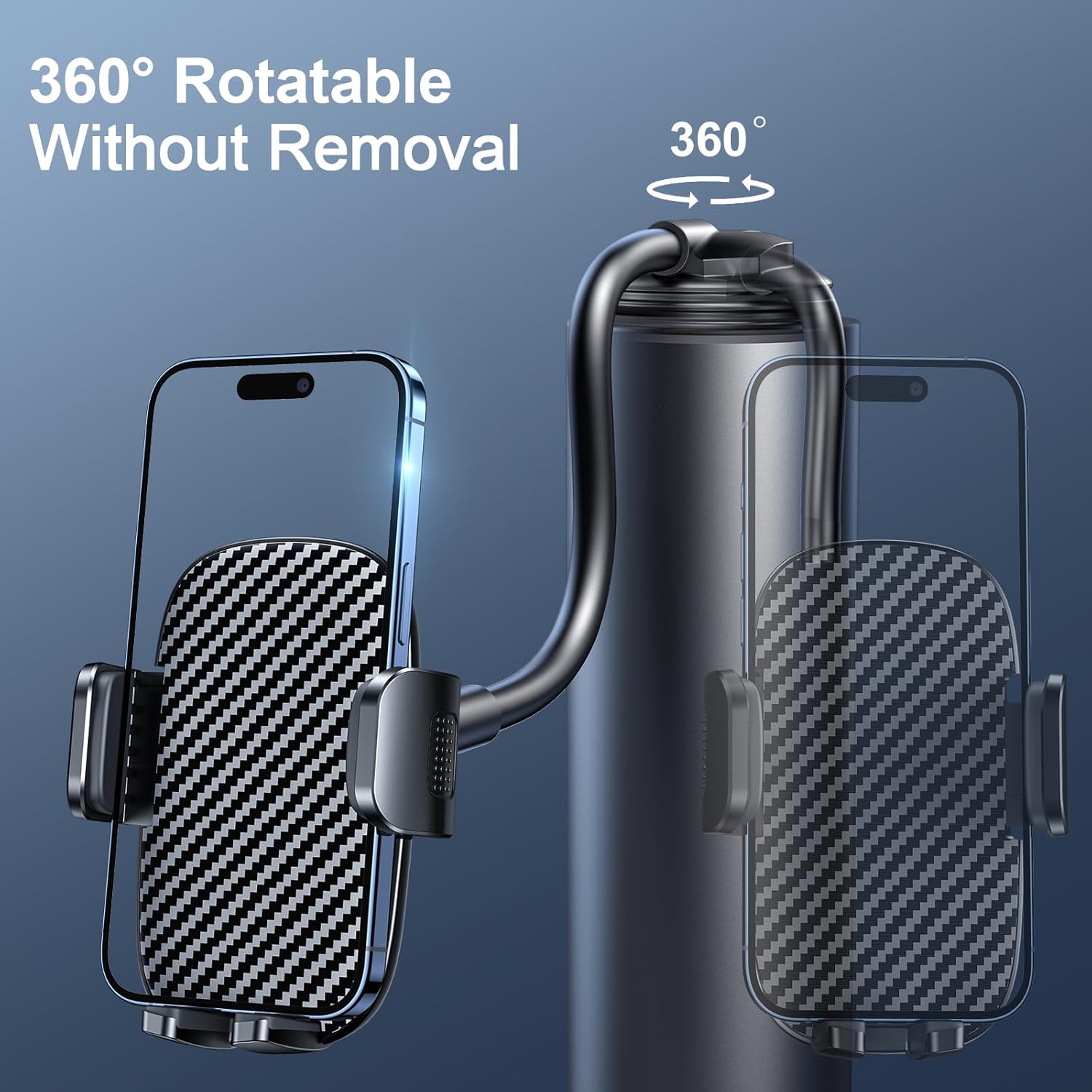 - Diseño creativo de brazo de cuello de cisne de 16 cm: El soporte para teléfono para coche utiliza un brazo de cuello de cisne de aluminio de 16 cm/6,2" de largo para mantener el teléfono más cerca. Se monta de forma segura en el parabrisas. Lo mejor de todo es que se puede doblar en todas las direcciones para no obstruir la visión.