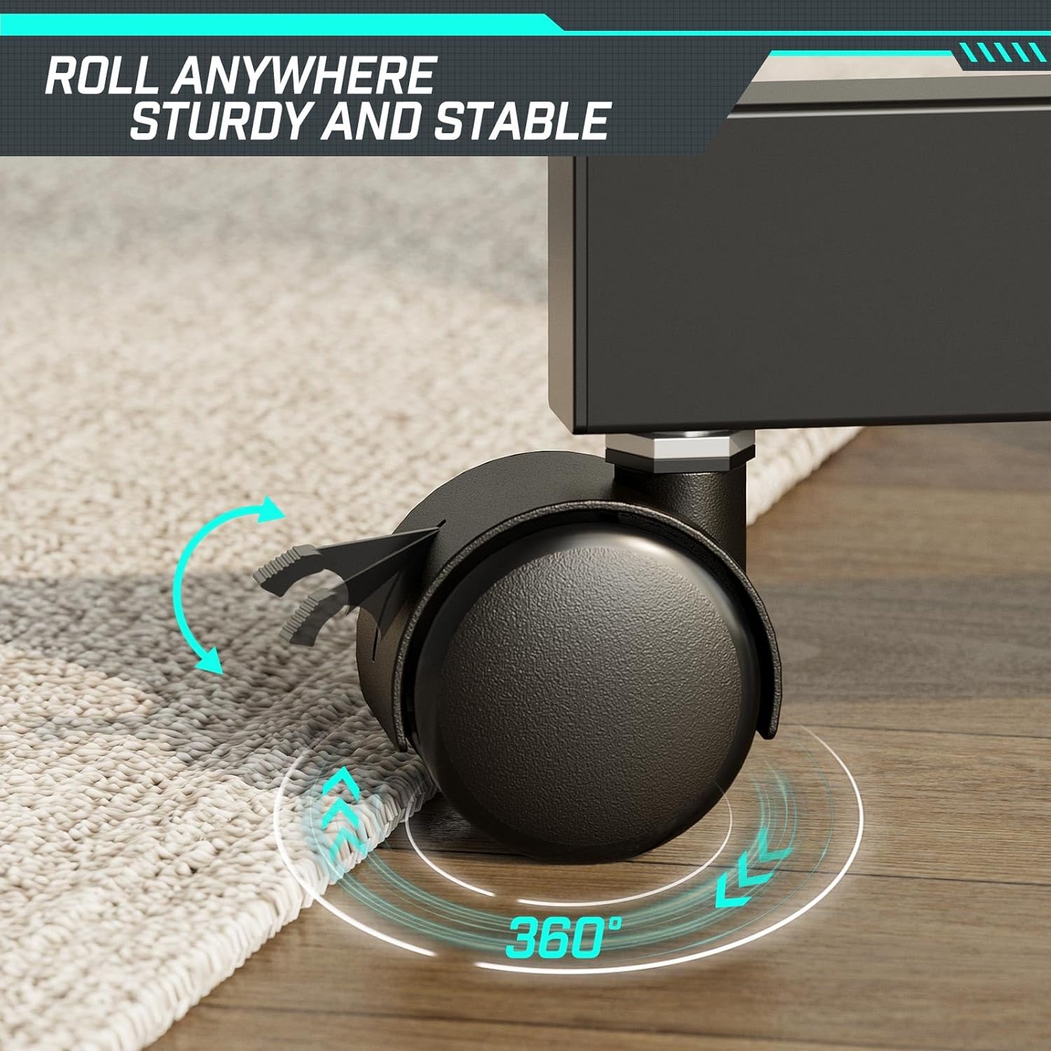 - Soporte de TV alto móvil: la base cuenta con 4 ruedas que proporcionan una movilidad suave tanto en suelos de madera dura como en alfombras. Todas las ruedas se bloquean fácilmente para garantizar la seguridad, y las ruedas están hechas de materiales de poliuretano de alta calidad no harán ruidos fuertes