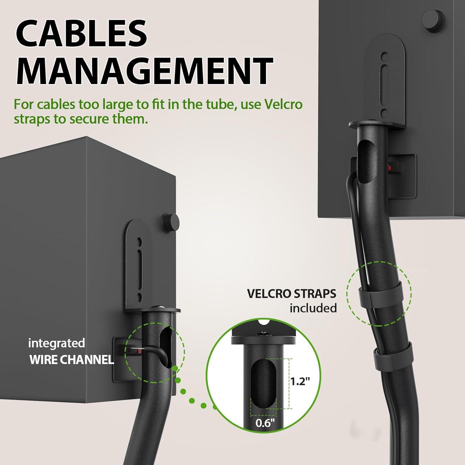 - Manejo del cable: los soportes de altavoz de piso mantienen los cables limpios y organizados con canal interno (0.5 pulgadas de ancho x 1.2 pulgadas de alto) para un aspecto limpio y ordenado. O velcros externos en el paquete para ayudar a correr el cable alrededor del tubo de soporte. Tornillos de altavoz aplicables: tornillo M4 x 30 mm, tornillo M6 x 30 mm.