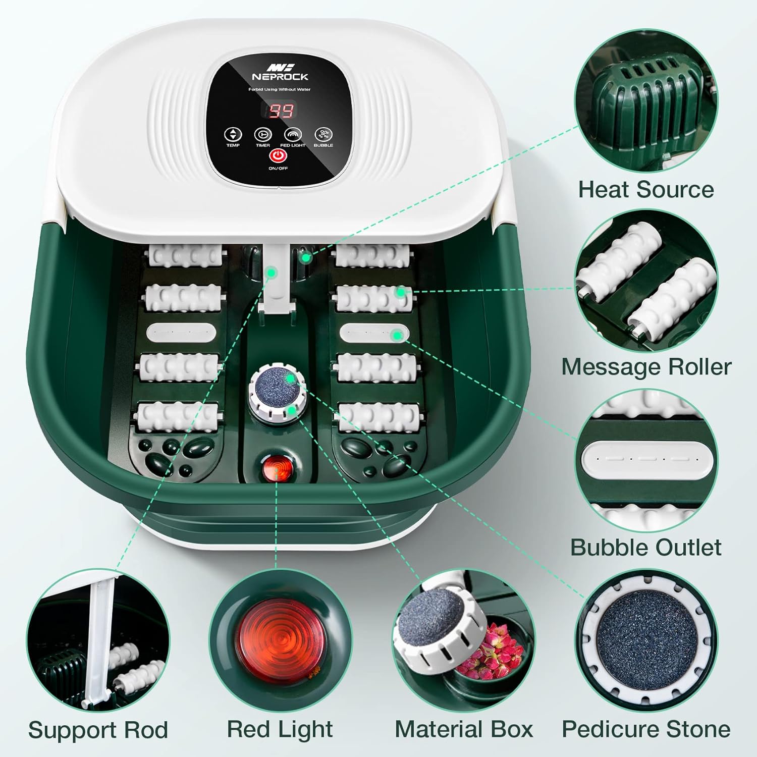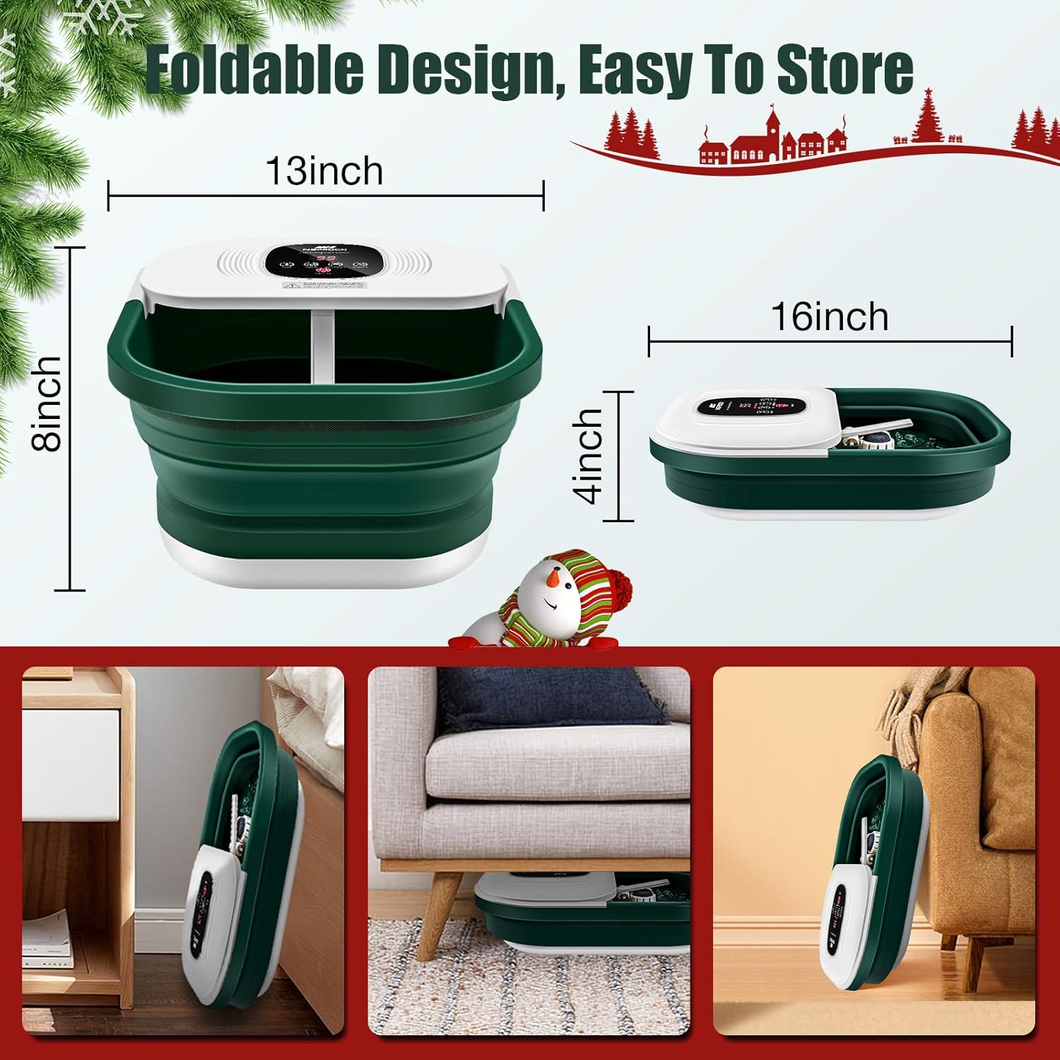 Neprock Foot Bath Spa con calor, masaje y chorros, bañera de hidromasaje plegable para pies y pies para aliviar el dolor de pies, masajeador de pies de pedicura y remojo de spa, Navidad para mujeres.