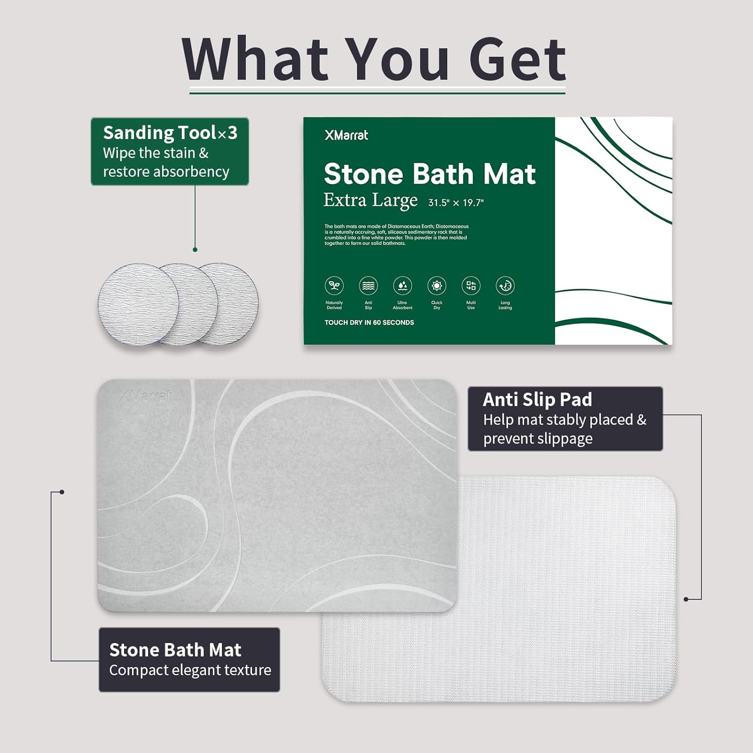 - Antideslizante: colocar la almohadilla antideslizante incluida debajo de la alfombra de baño de piedra garantiza una resistencia eficaz al deslizamiento después de la ducha, lo que le proporciona un soporte estable y evita resbalones en el baño.