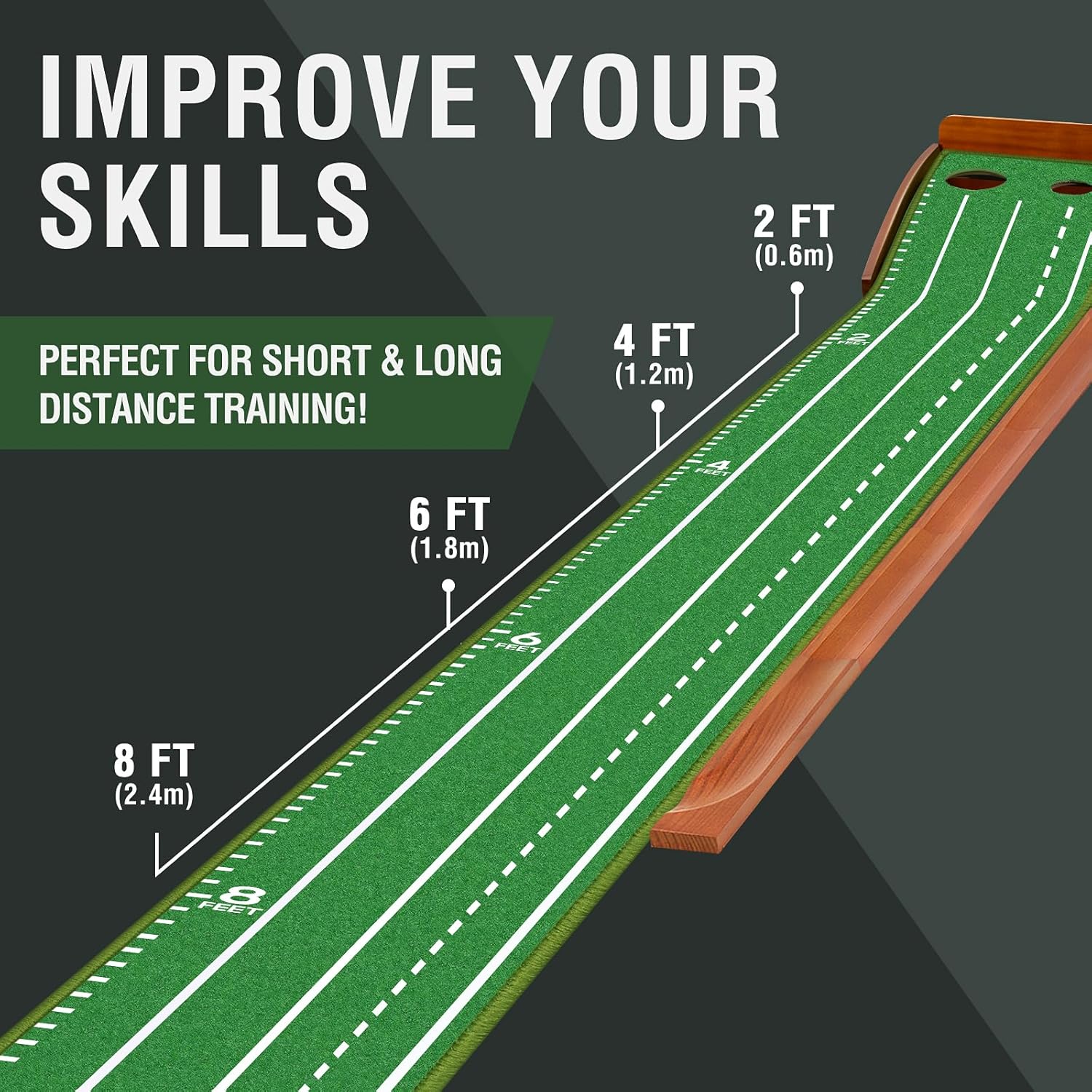 - 4 escalas claras: la práctica de poner verde en interiores marcados con pautas claras y 4 escalas de distancia: 2/4/6/8 pies, lo que puede mejorar la precisión de tus putts a diferentes distancias. Las pautas ayudarán a mejorar tu acción de putter, enderezar el putter, balancear hacia atrás y hacia atrás, perfecto para mejorar el ritmo, el equilibrio y las habilidades de poner. Te permite disfrutar de la práctica en cualquier momento y en cualquier lugar.
