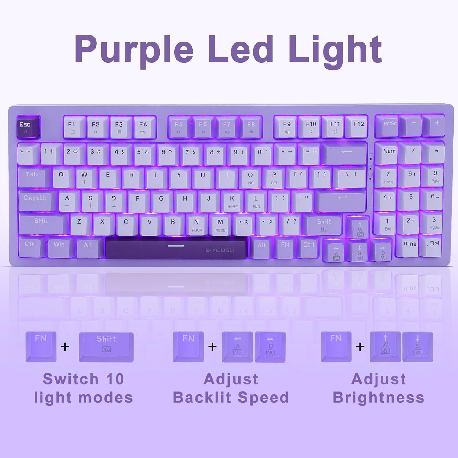 - DISEÑO - E-YOOSO Z-94: tiene un teclado mecánico de 94 teclas, manteniendo el teclado numérico y las teclas de flecha, será muy conveniente para tu trabajo y juegos.