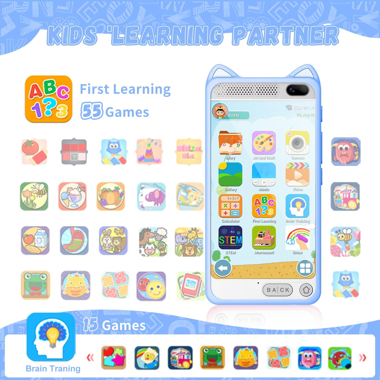 - Juguete para teléfono todo en uno: teléfono para niños con visualización táctil de 3.97 pulgadas con funciones ricas, diseñado específicamente para niños de 3 a 12 años, incluyendo varios módulos educativos y de entretenimiento. Tiene funciones como aprendizaje ABC, narración de historias, dibujo, cámara selfie, reproductor de MP3 y más de 200 juegos educativos, que pueden cultivar habilidades lógicas, de pensamiento y de reacción de los niños